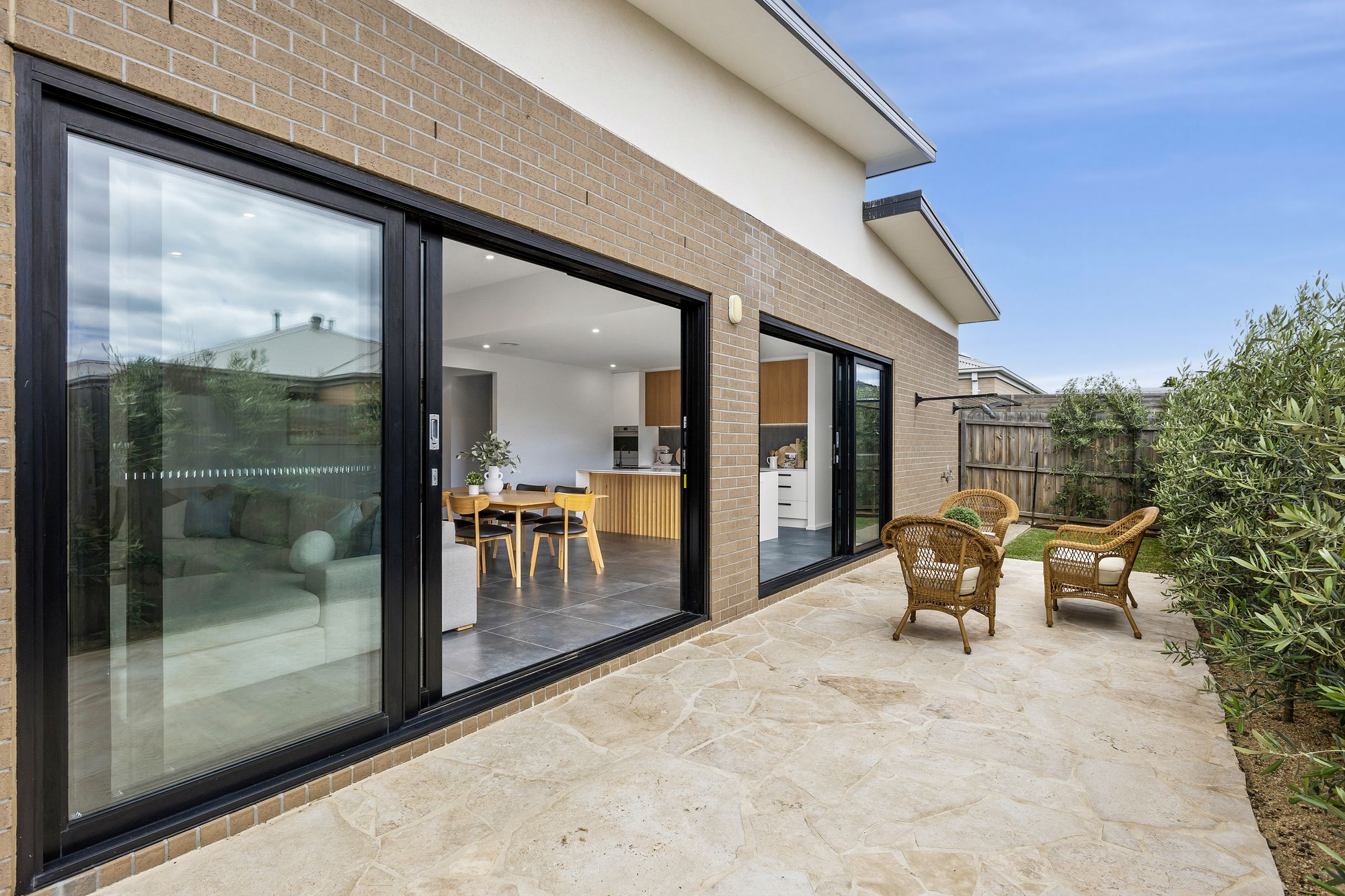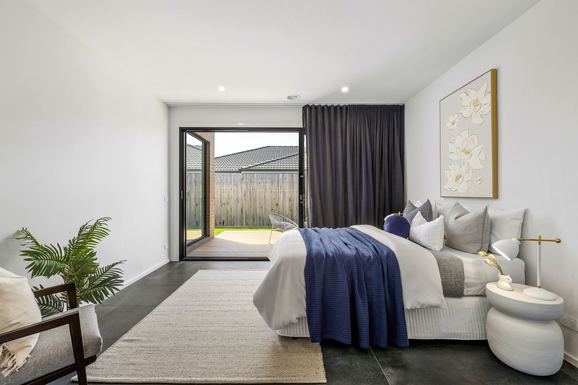 Outdoor – With a focus on lifestyle and low-maintenance design, an elegant façade welcomes you into the home while the manicured gardens are defined by the exposed aggregate driveway and pathing, as well as decked entry to the home. The North-East facing rear yard showcases the epitome of fantastic family living with a vibrant flagstone pad, creating a seamless indoor/outdoor entertainment space. The private East facing deck offers the perfect space for a morning coffee under the morning sun.