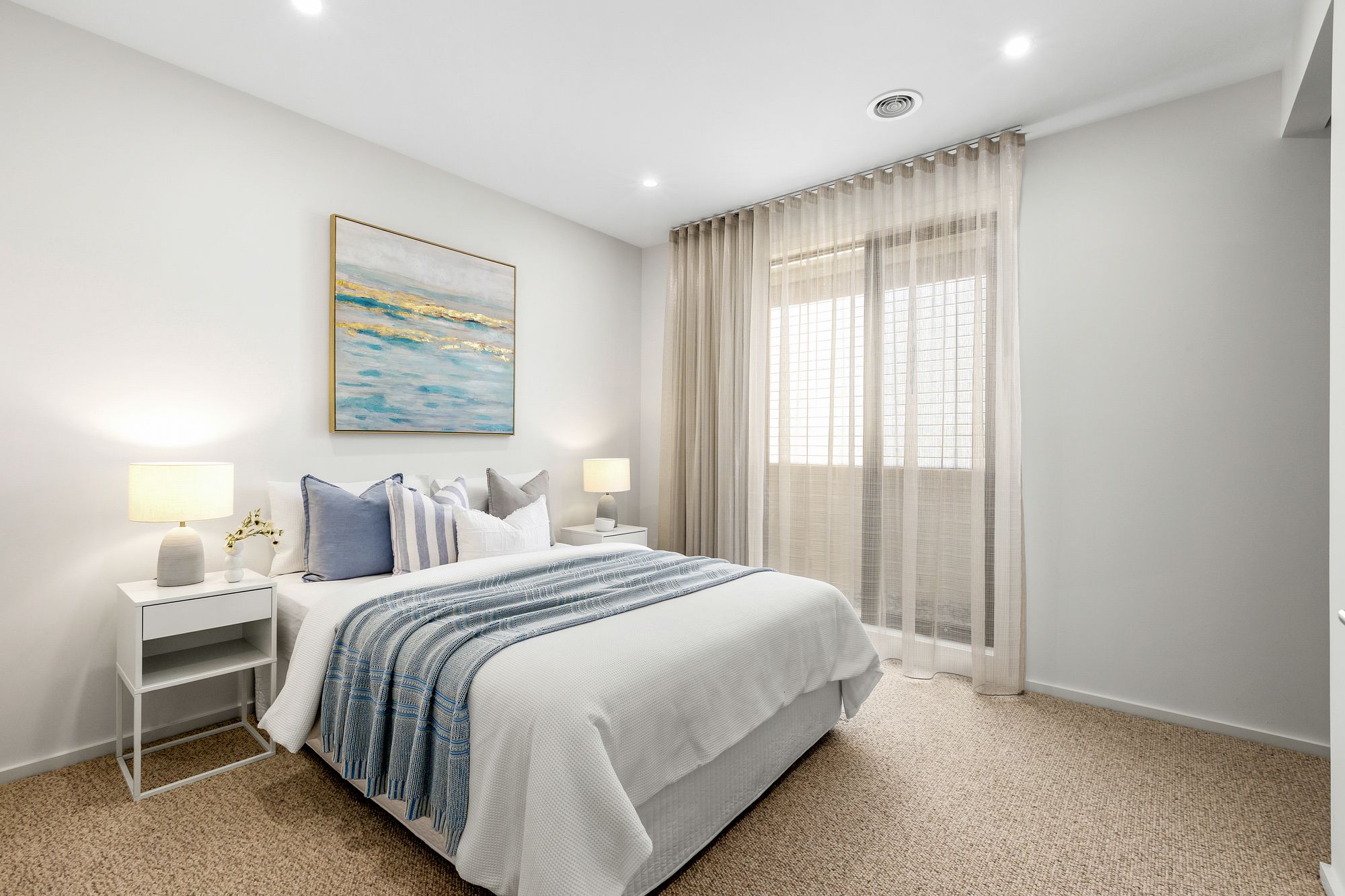 Additional Bedrooms: Privately located on the Western side the home, each feature 100% wool carpets underfoot with a premium underlay, downlights, square set cornices, double glazed windows with sheer and blockout curtains, ducted heating, walk-in robes (front bedroom consists of mirrored built-in robes).
