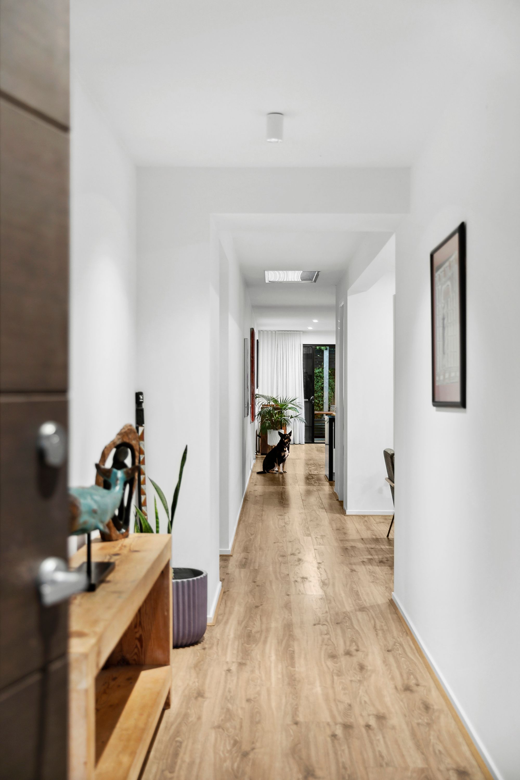 Kitchen & Dining: Manufactured oak flooring, stunning high ceilings with square set cornices, Wide 60mm island bench with breakfast bar, waterfall edges & undermount sink, glass splash back & additional window splashback, down lights & pendant lighting, 900mm induction cooktop and rangehood, integrated dishwasher & in-built microwave provision, large built in pantry, never ending bench space, ample storage, over head cabinetry, fridge cavity, zoned ducted heating & refrigerated cooling, glass sliding doors that open up to courtyard and outdoor entertaining space, floor to ceiling sheer curtains across all glass sliding doors