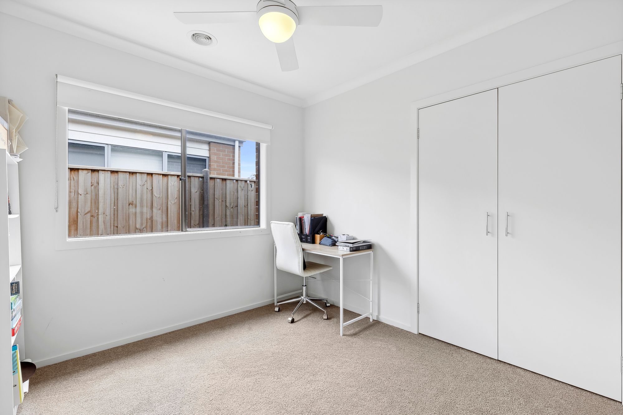 East facing windows. Blockout blinds, downlights, ducted heating and split-system cooling, tiled flooring, direct access to the East-facing rear yard and alfresco area.