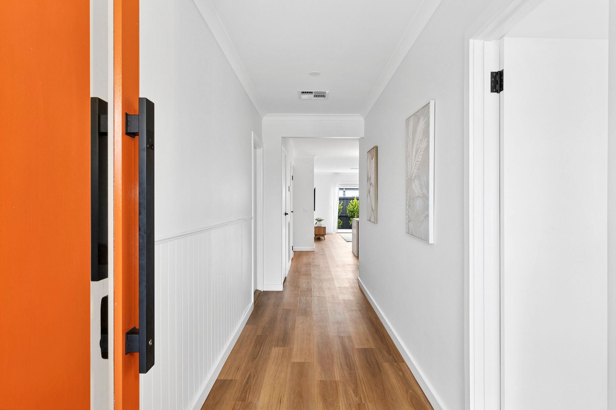 The spacious hallway welcomes you with a striking VJ panelled feature wall, setting the tone for the home. The expansive master suite boasts a fitted out walk-in robe, and a custom upgraded ensuite with twin vanity and floor to ceiling tiles which provides a sense of luxury and comfort. The heart of the property is the exceptional kitchen, featuring a waterfall 40mm stone island benchtop, upgraded Fisher & Paykel 900mm stove and oven, and a chic feature tile backsplash and light bar. The open-plan living creates a warm and inviting space that flows effortlessly to the outdoor entertaining area.