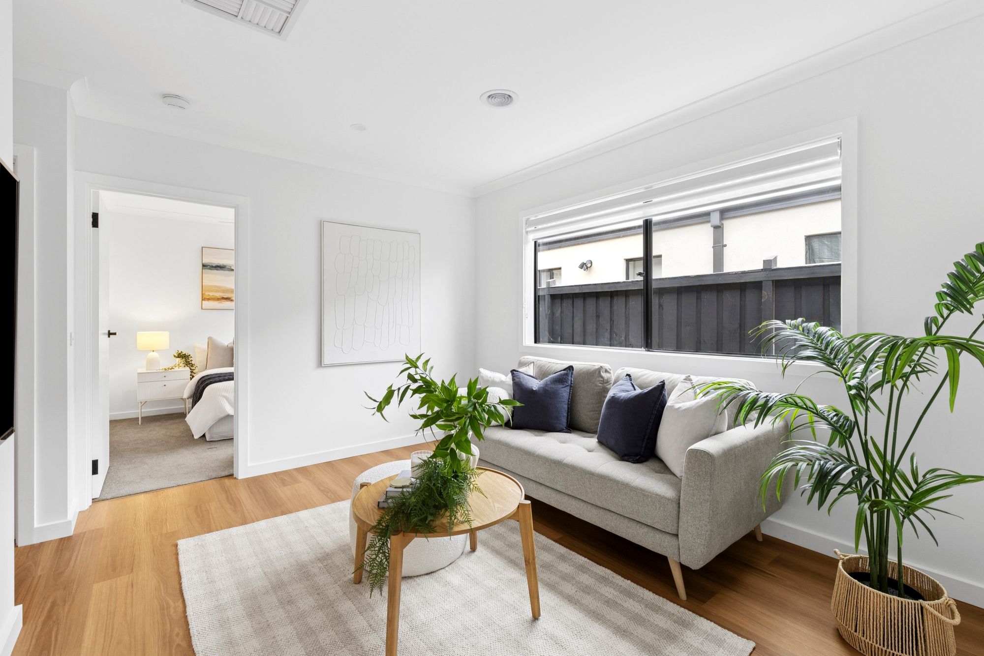 Second Living: Window with roller blinds, hybrid floorboards, both TV and power points.