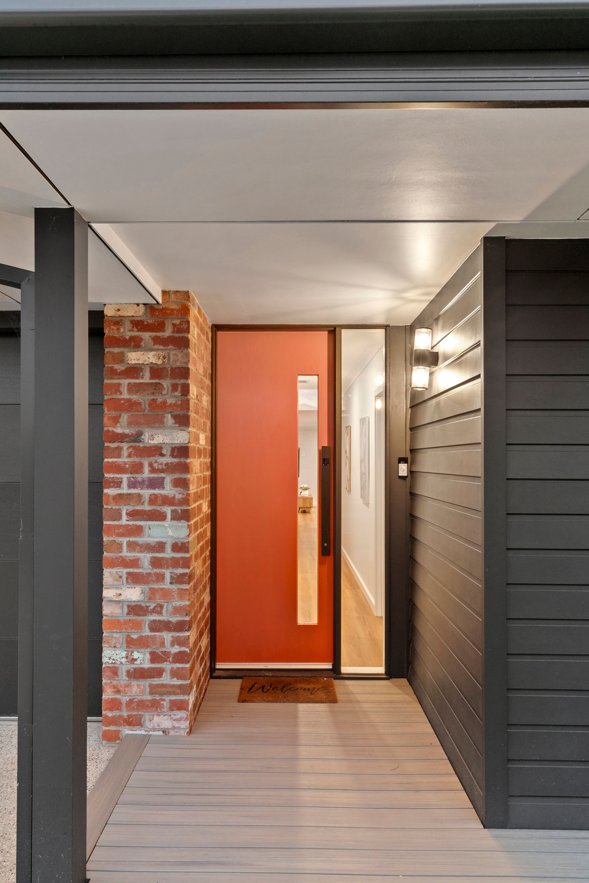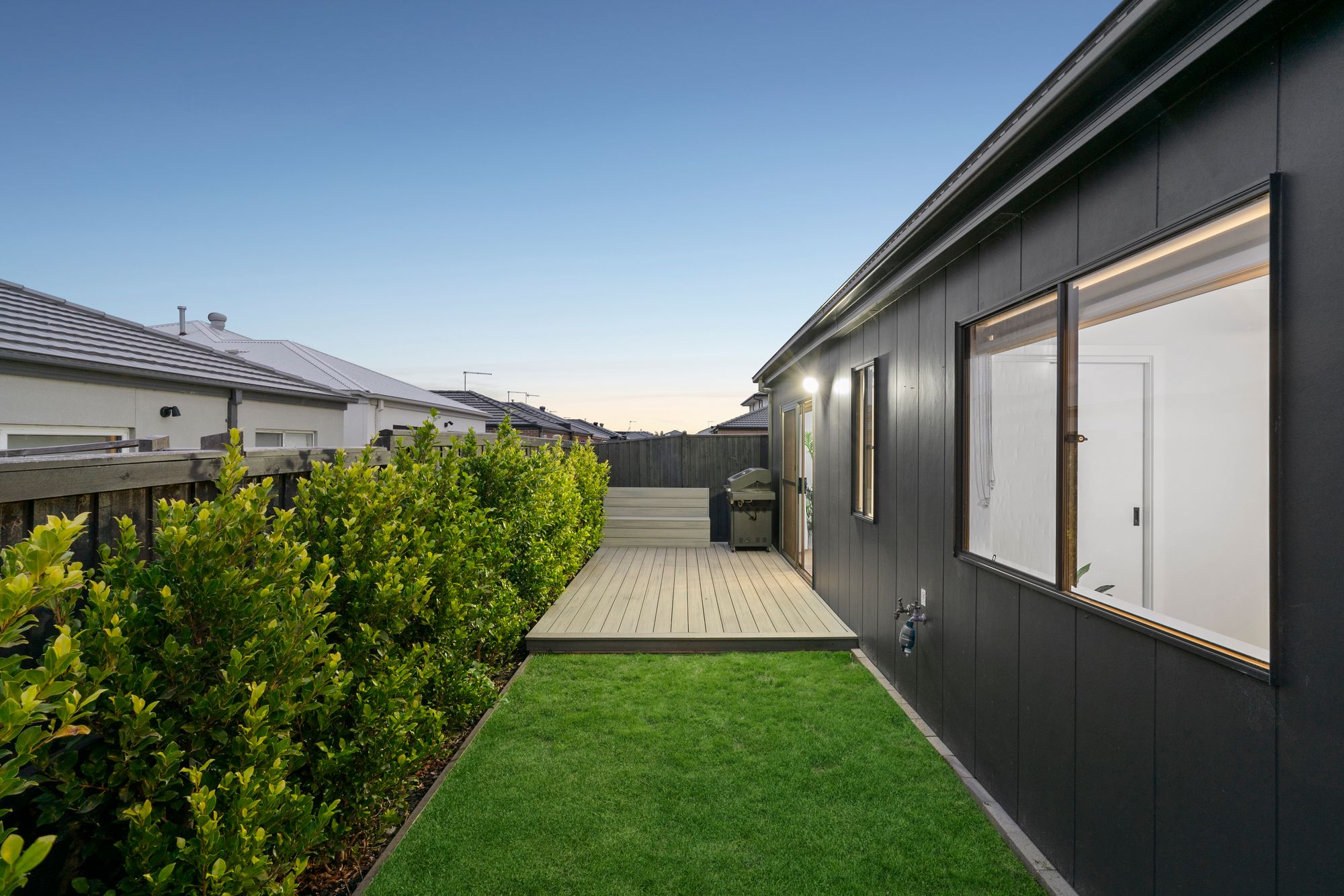 Outdoor Area: Eco deck with built-in bench, grassed area, hedges, side access, security lights, aggregate concrete single side access with gate, rear garage access, and painted fences.