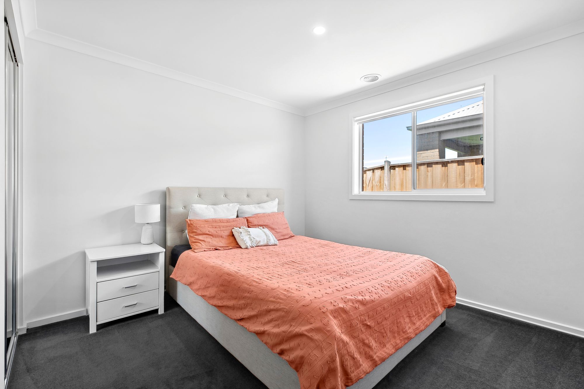Additional bedrooms: Carpet, ducted heating, built-in robes with shelving, downlights, windows with roller blinds