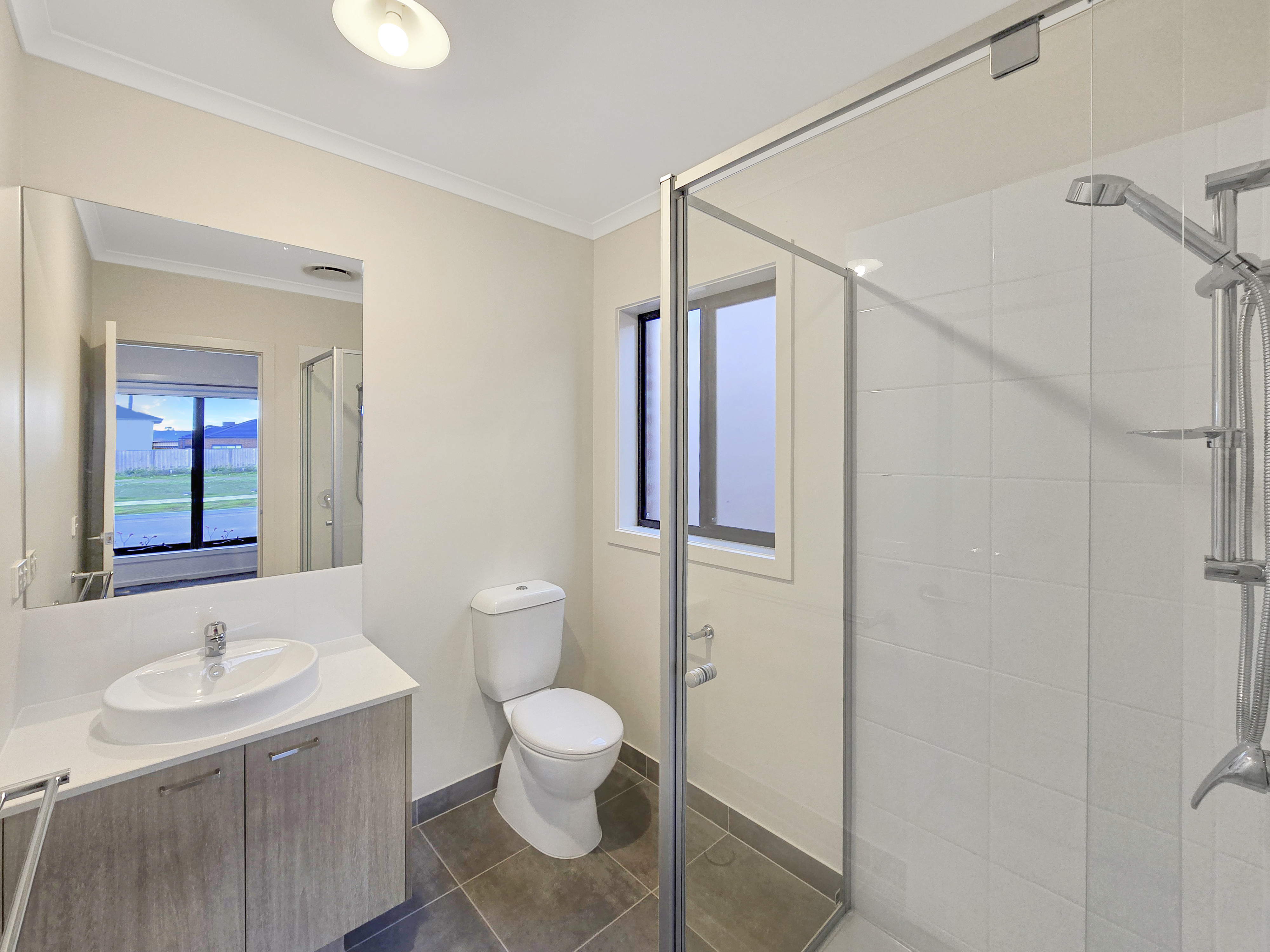 Master Suite: Generously sized and situated at the front of the home, it showcases a spacious walk-in robe and elegant ensuite. Complete with North-facing windows and blockout blinds and ducted heating, creating a comfortable space year-round. The gorgeous ensuite consists of a tiled shower with a handheld and wall-mounted showerhead, single basin on a 20mm stone vanity with a tiled/mirrored splashbacks, toilet and frosted sliding window.