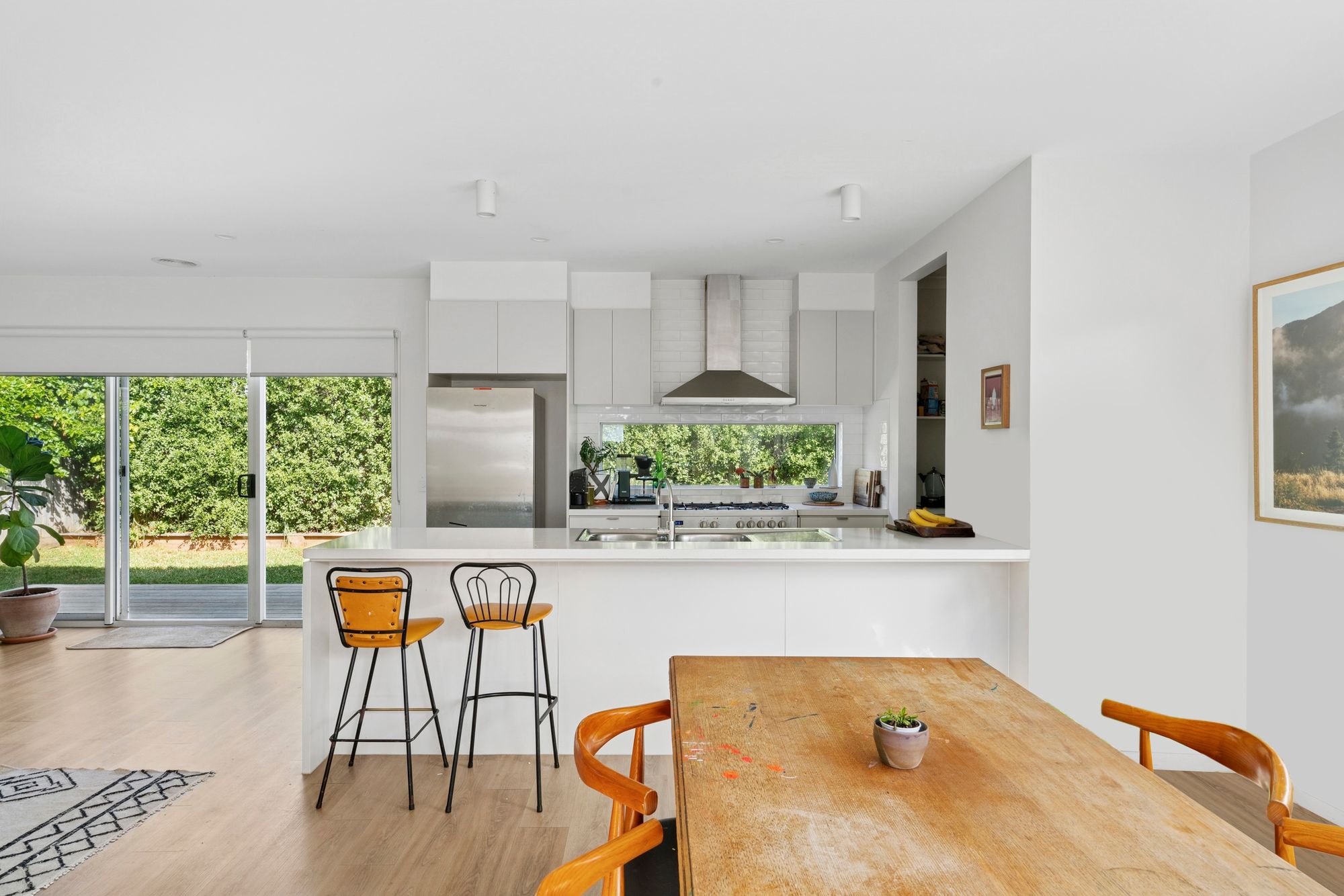 Living/dining: open plan kitchen/living/dining, expansive dining space, downlights, timber laminate floorboards, ducted heating, ample windows allowing natural light, roller blinds, sliding glass doors through to decked alfresco creating an indoor/outdoor flow.