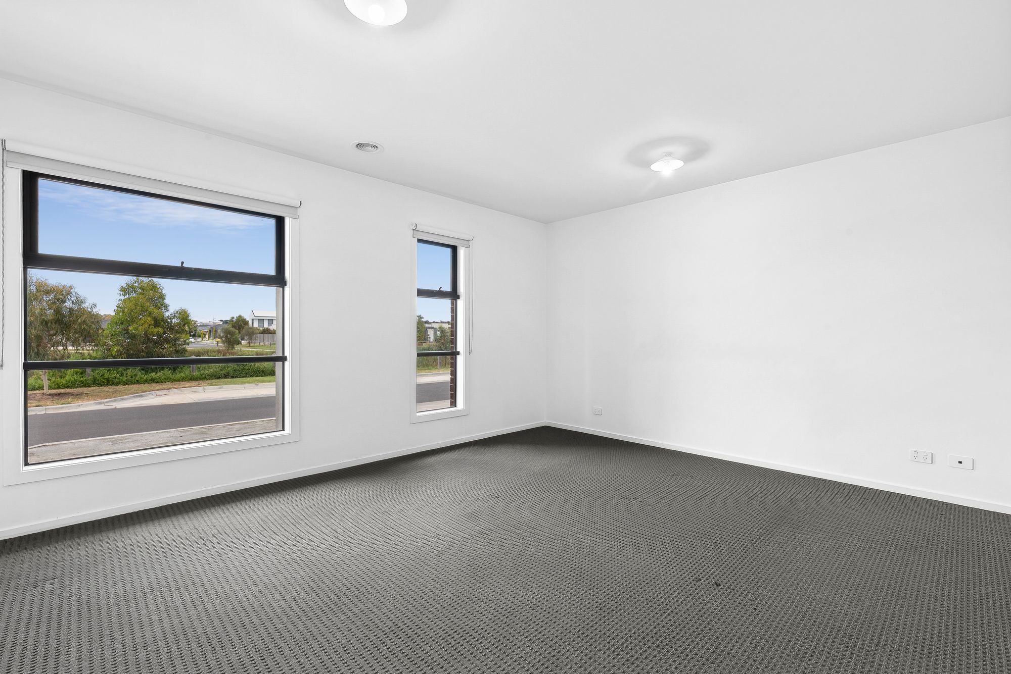 Master bedroom – Expansive master bedroom, carpet flooring, batten lights, ducted heating and cooling, windows with roller blinds