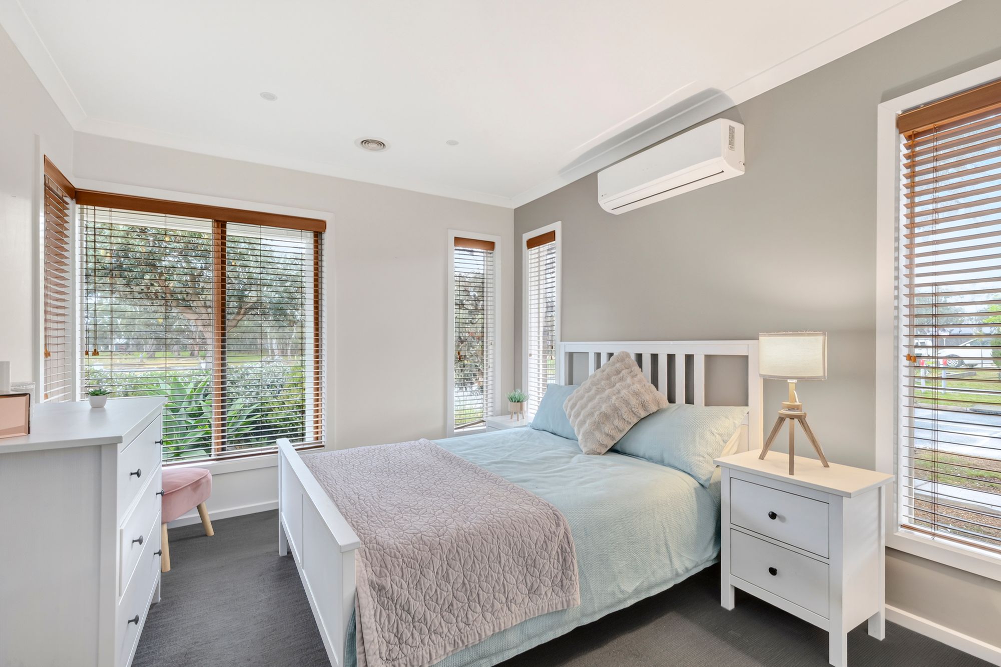 Master Bedroom: Walk-in robe, split system air conditioning, ducted heating, carpet, feature windows, venetian blinds, power points.