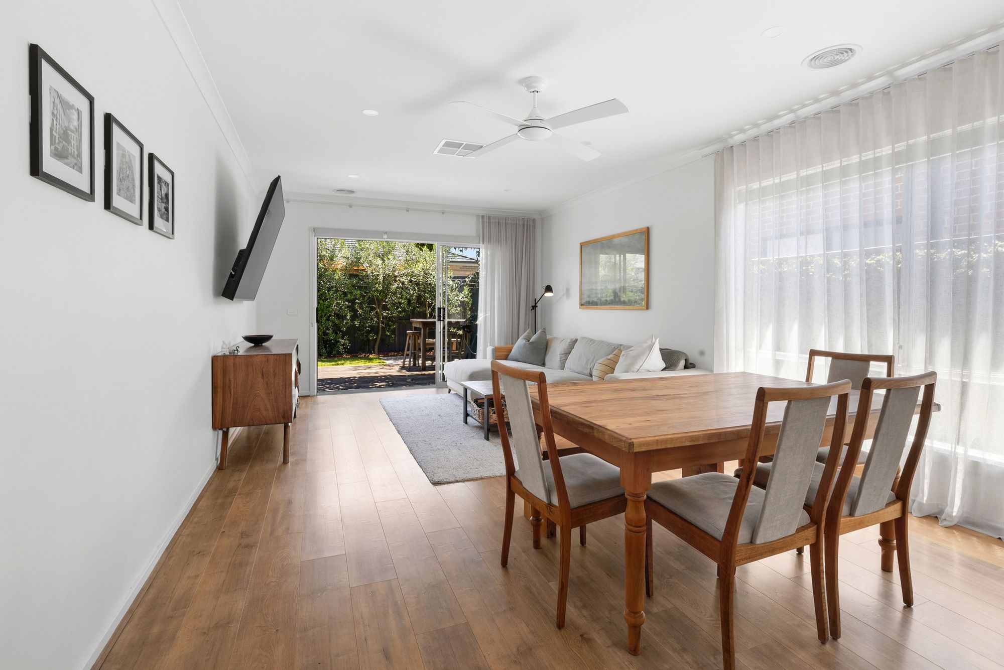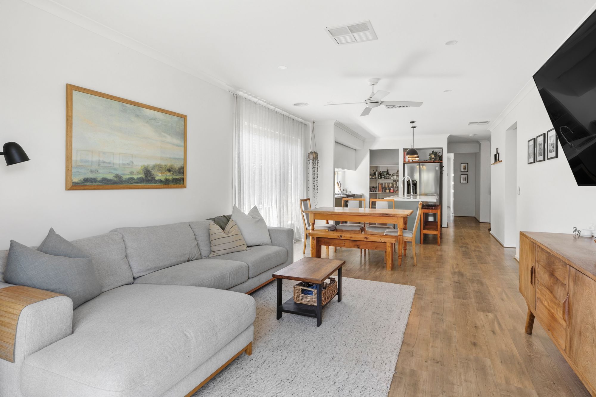 Living/Dining: Sheer curtains, raised ceilings, downlights, ceiling fan, hybrid flooring, evaporative cooling, ducted heating.