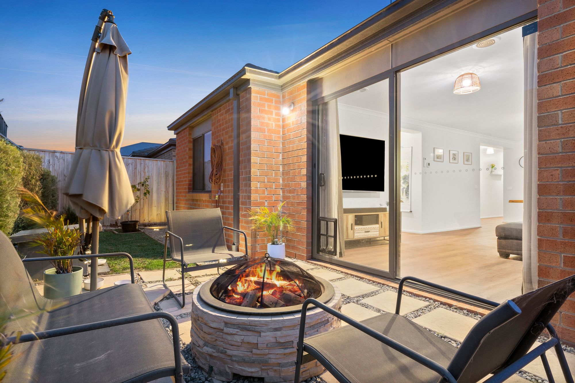 Mod Cons & Outdoor: European laundry space in hallway, single electronic lock up garage with timber laminate flooring (able to be removed), low maintenance front & back landscaping with grass, pavers & stones & side gate access.