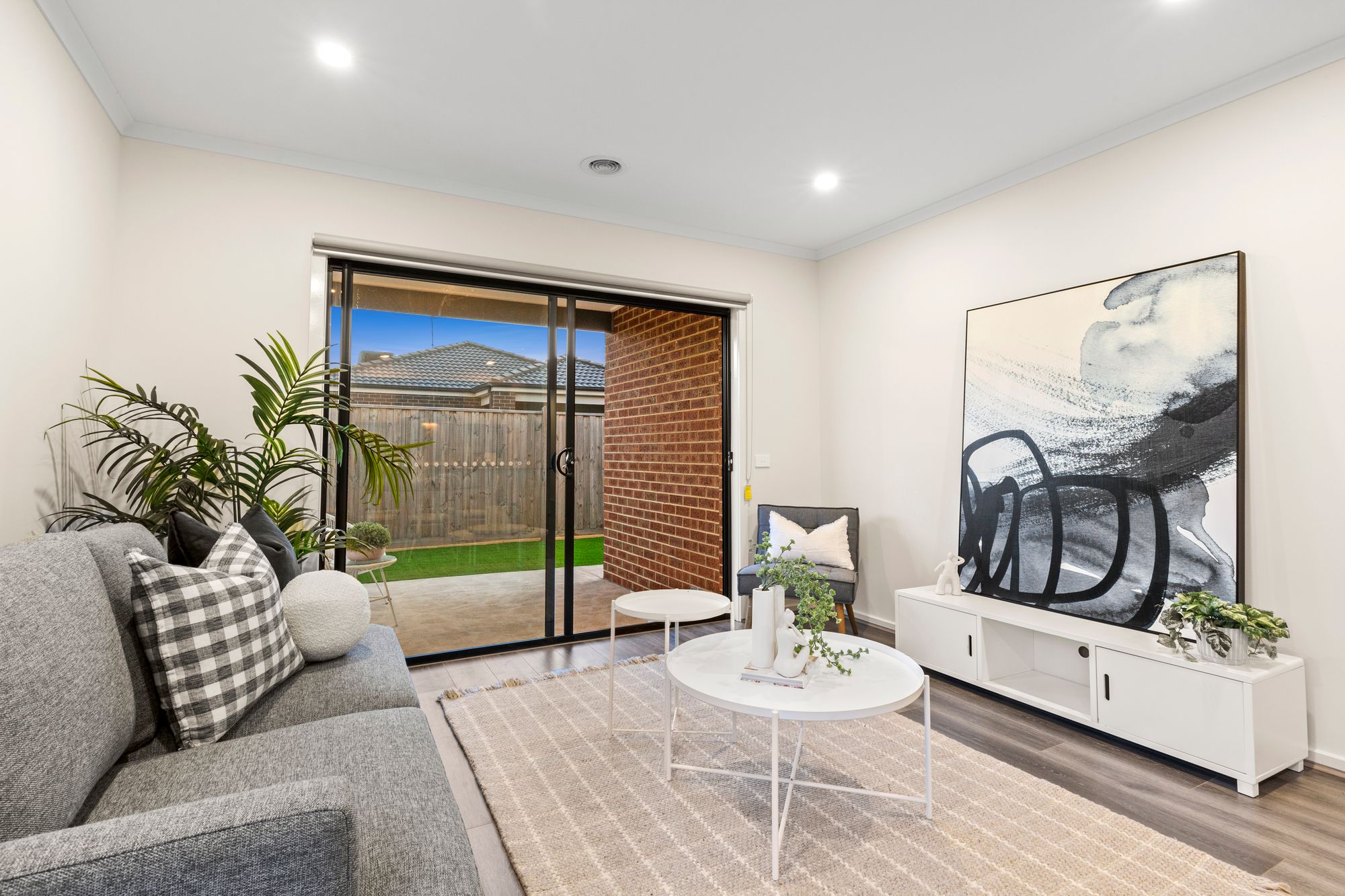 Second living- semi secluded situated upon entry of home, carpeted, roller blinds, gas ducted heating, downlights