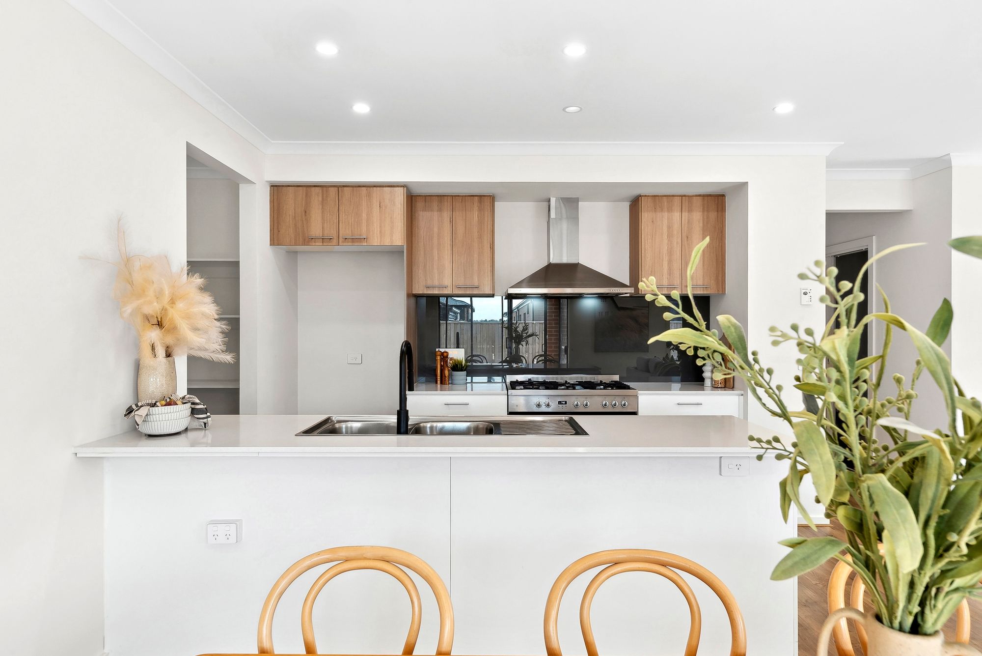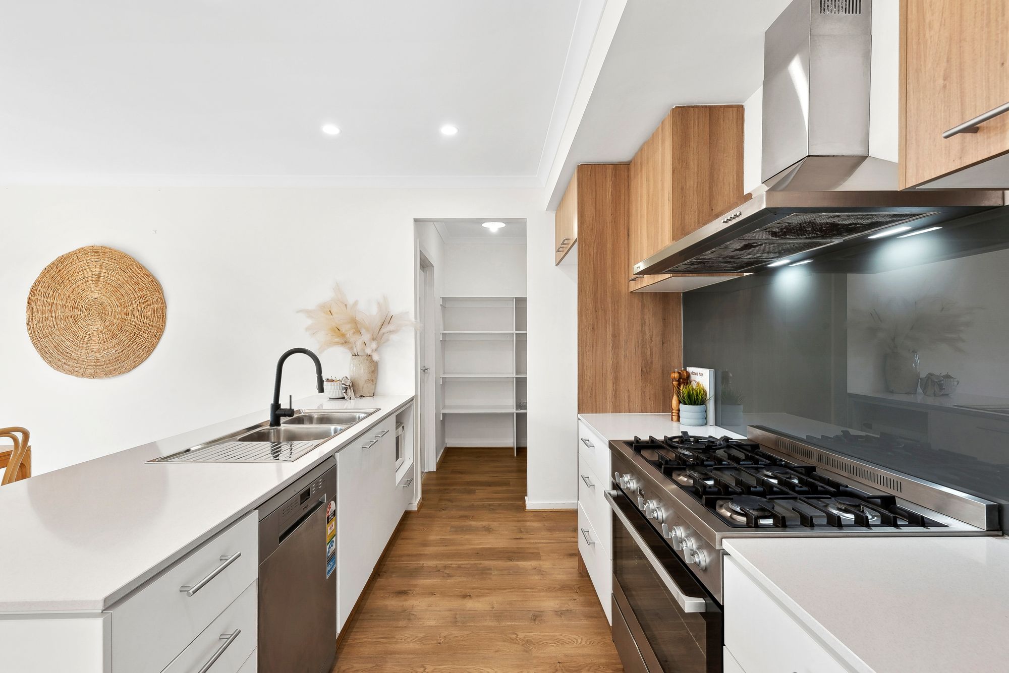 Kitchen: Spacious walk-in pantry with a plethora of storage options and direct access to the laundry. Large fridge and microwave cavity. Generous kitchen island bench with 20mm stone benchtops and breakfast bar overhang. Glass splashback, downlights, high end cabinetry including overhead cabinetry and pot-drawers. Freestanding 900mm oven and stovetop, dishwasher and dual basin sink.