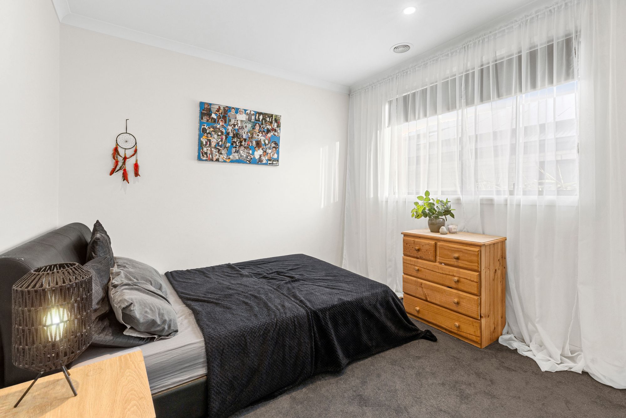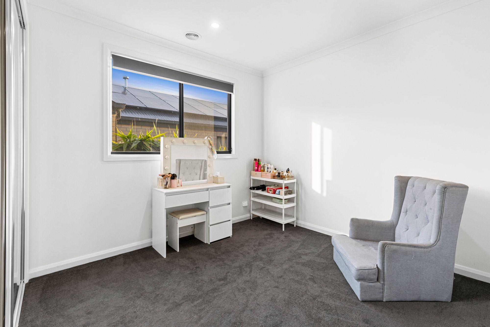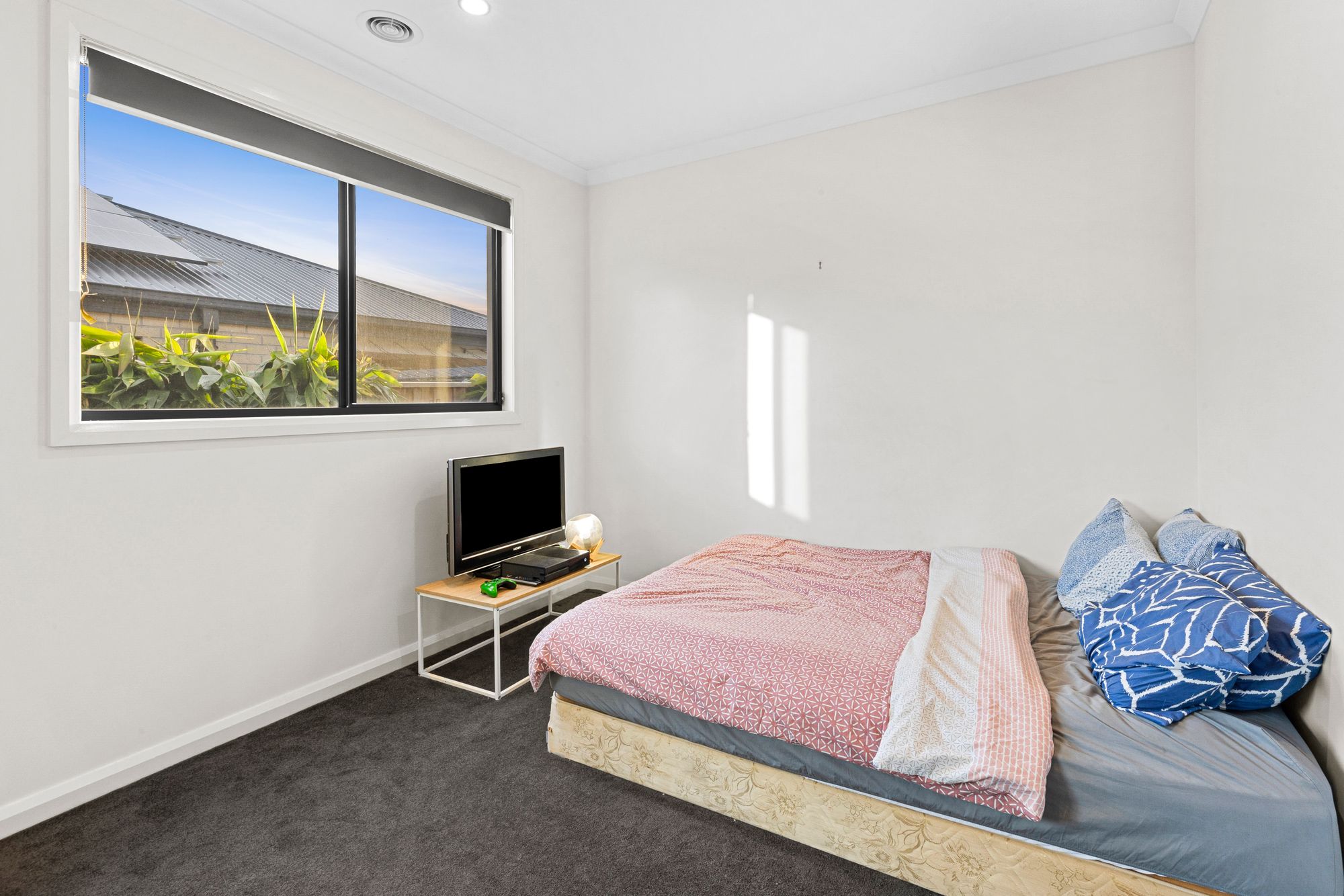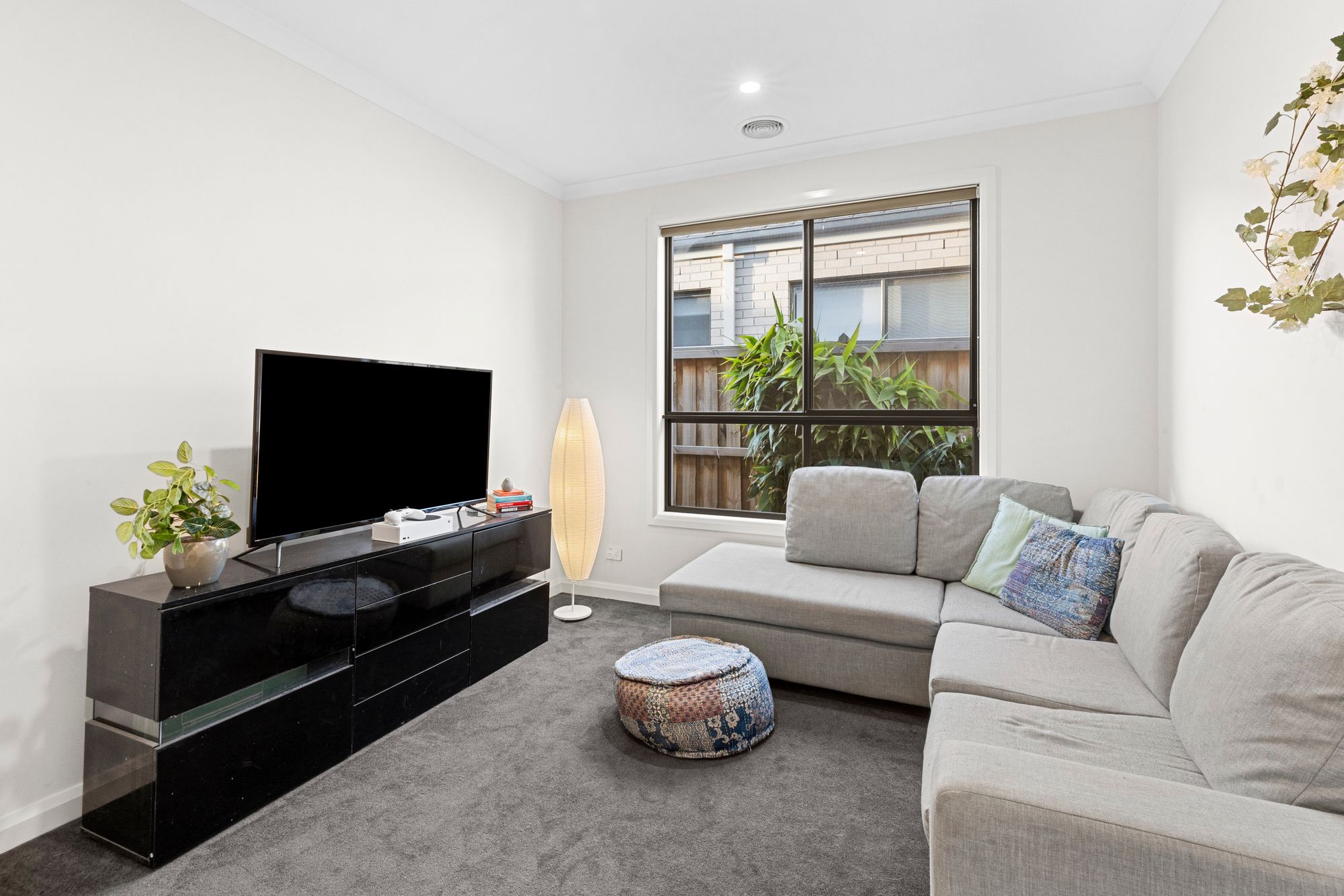 Second living: Raised ceilings, feature window, carpet, roller blinds, tv points, PowerPoints, downlights, ducted heating, semi-secluded.