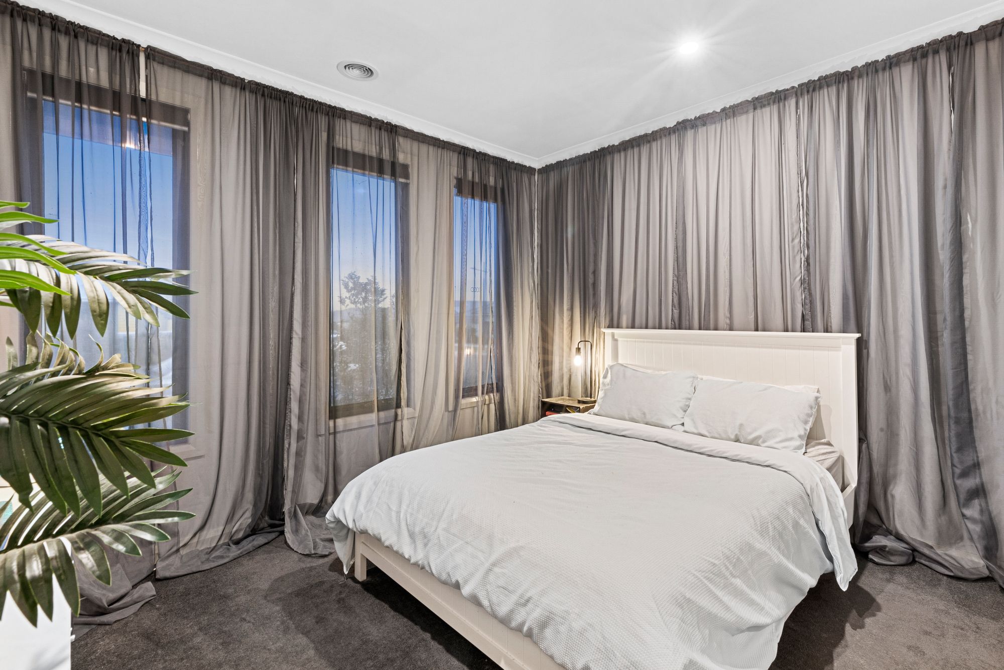Master: Raised ceilings, feature windows, walk in robe with feature door, roller blinds, tv point, PowerPoints,