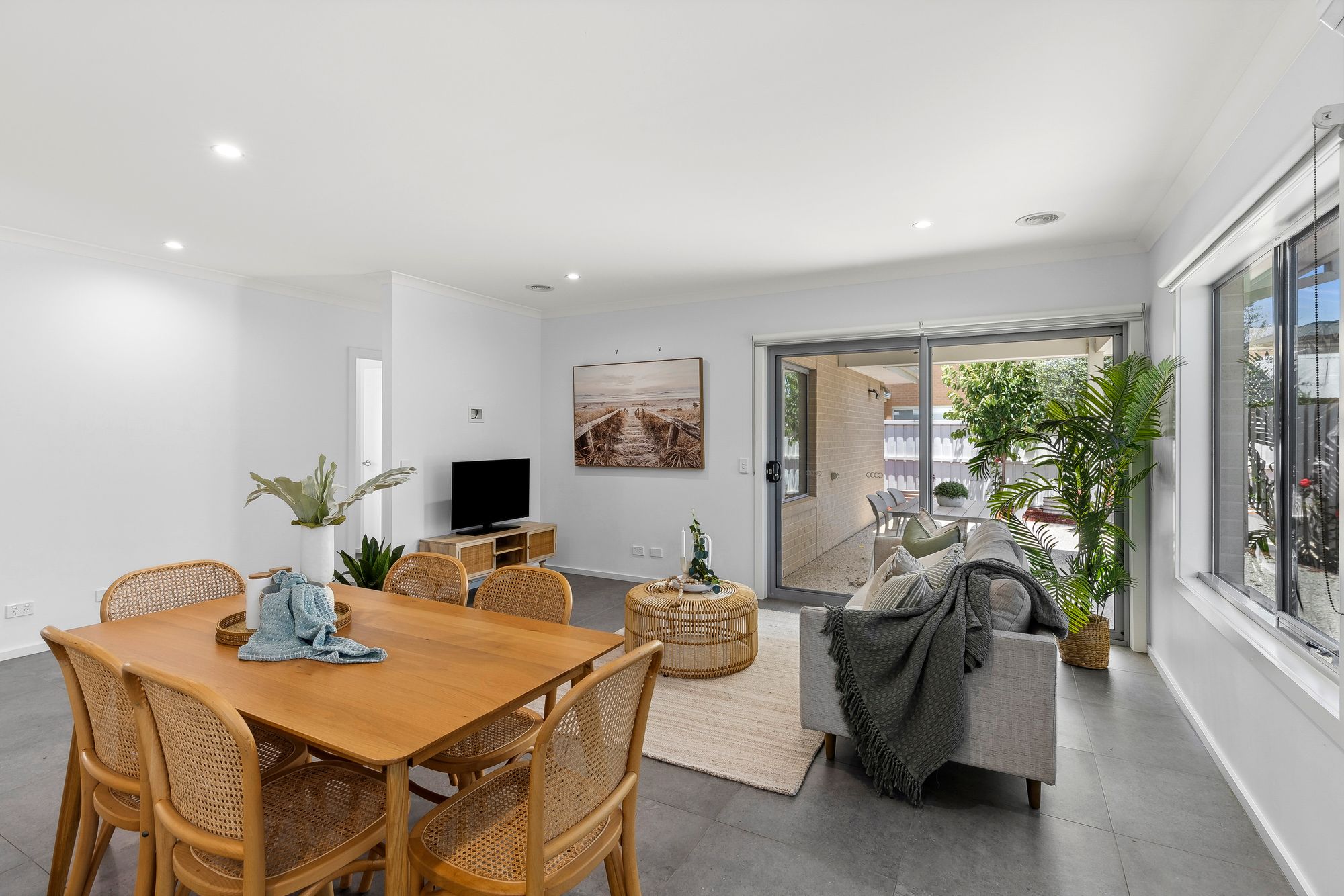 Open Plan Living/Dining: Ample natural light from the surrounding South and West facing glass sliding doors and windows, each with blockout blinds. The main living and dining space leads out onto the exposed aggregate and undercover outdoor entertainment area as well and low maintenance rear yard. Downlights, ducted heating and split-system cooling.