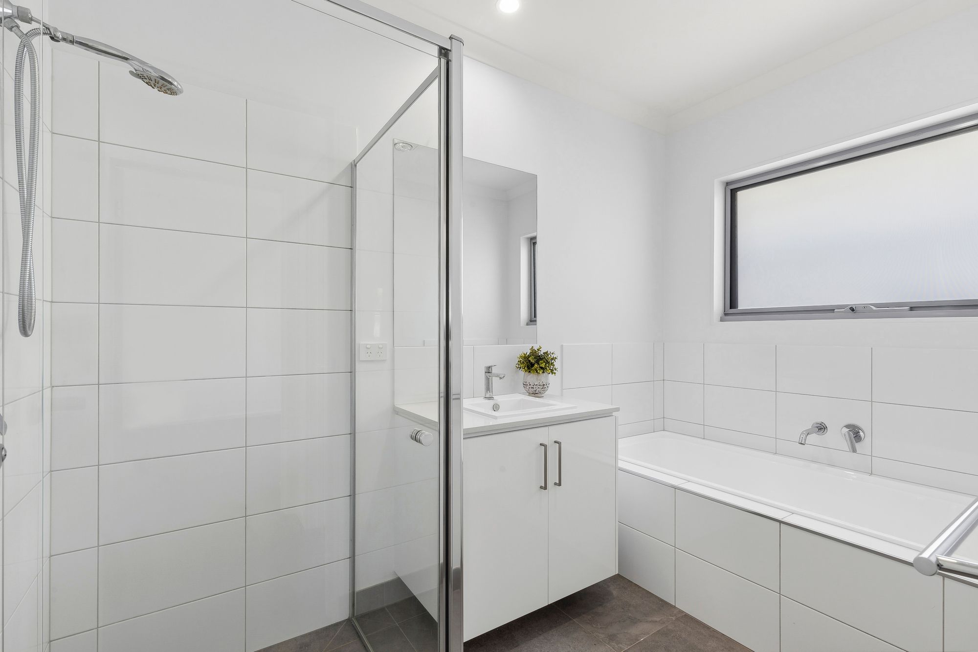 Additional Bathroom: Effortlessly servicing the household and the three bedrooms surrounding, the secondary bathroom homes a single basin on a 20mm stone benchtop vanity with tiled/mirrored splashback, tiled shower, toilet, raised bath, downlights and frosted window.
