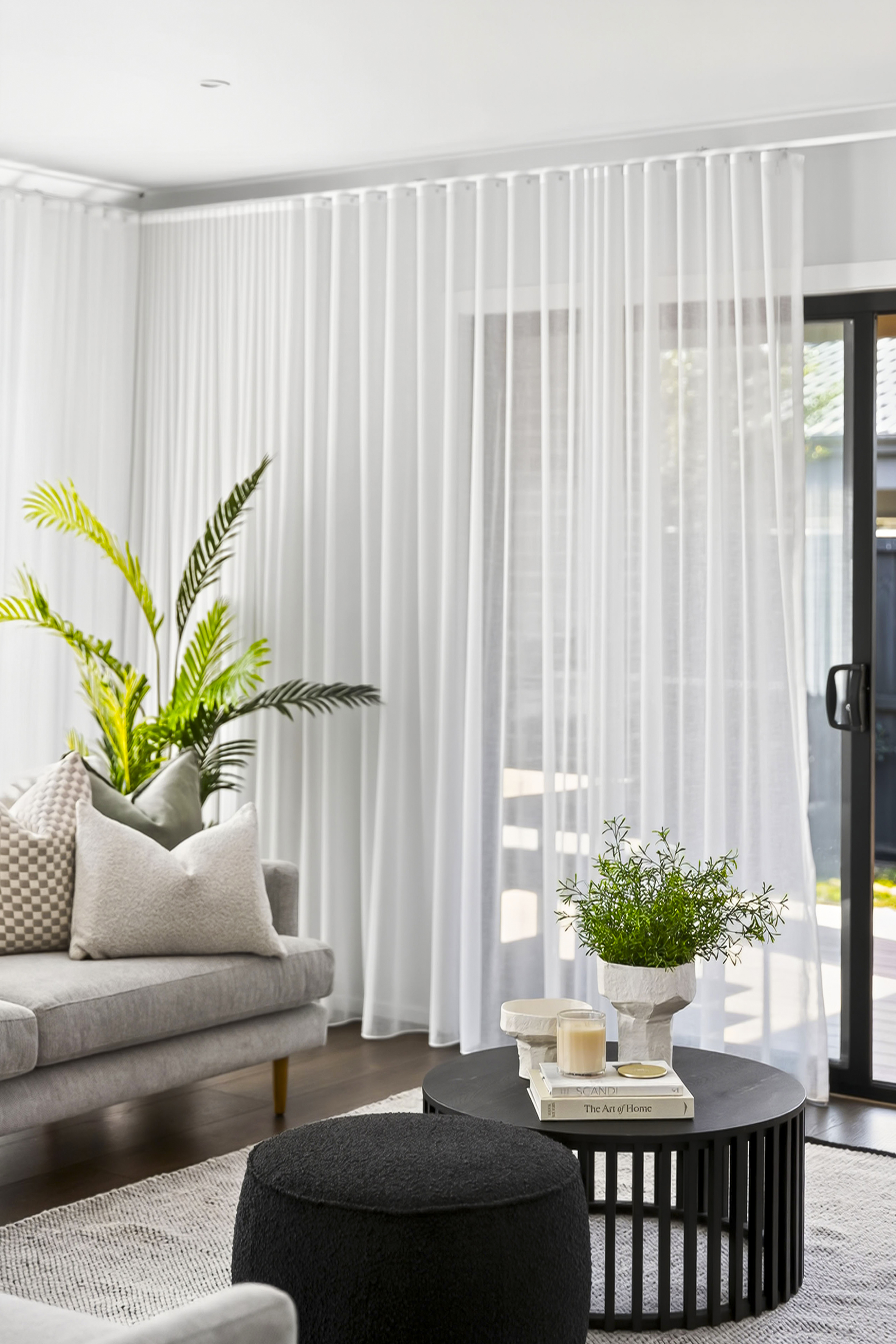 Second Living Room – A separate lounge provides the perfect setting for movie nights or quiet relaxation. Featuring soft carpet, wide windows dressed in sheer curtains, ducted heating, and a warm, inviting atmosphere.