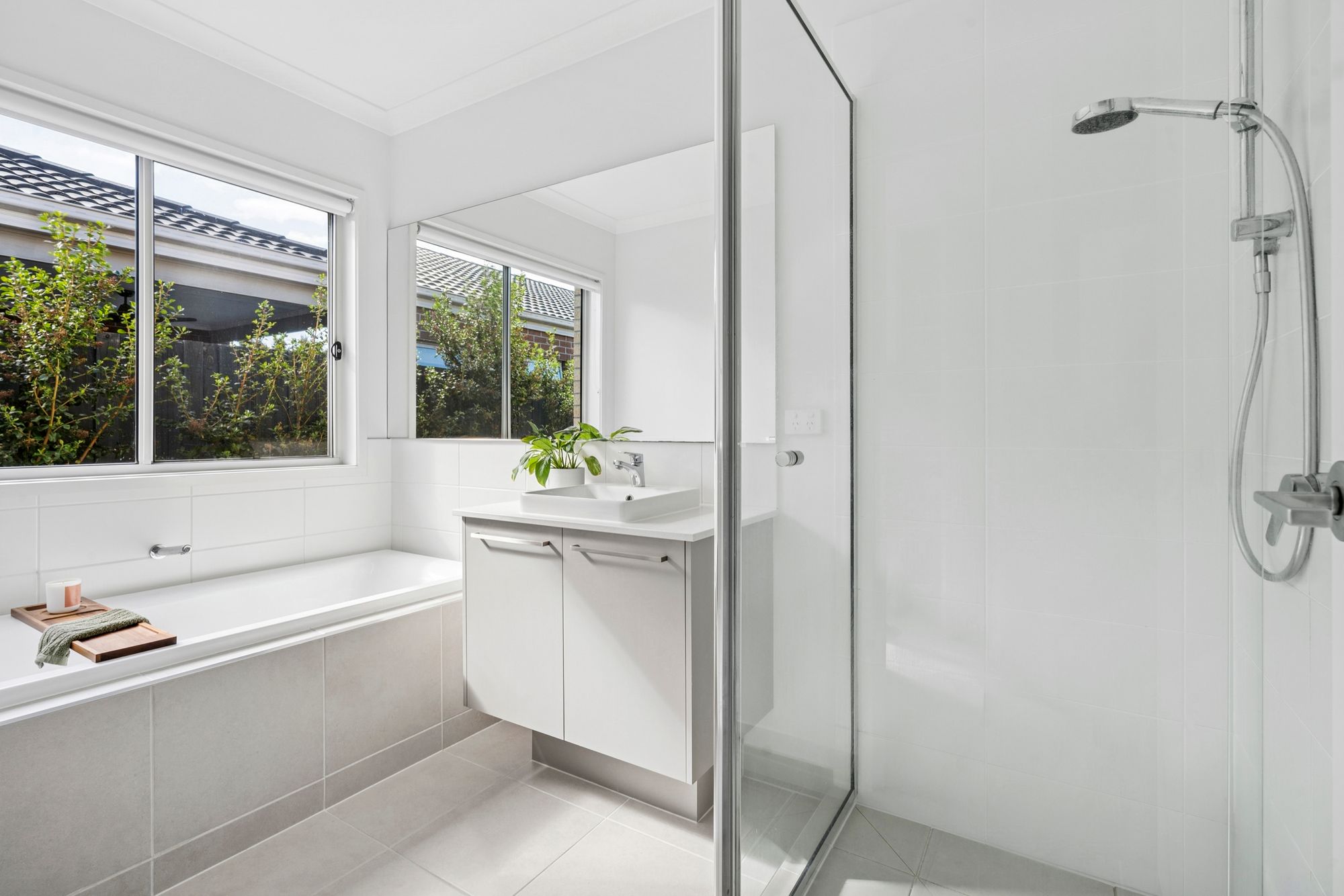 Additional Bathroom: Effortlessly servicing the household and the three bedrooms surrounding, the secondary bathroom homes a single basin and vanity with tiled/mirrored splashback, tiled shower with handheld and wall mounted showerhead, raised bath and separate toilet.