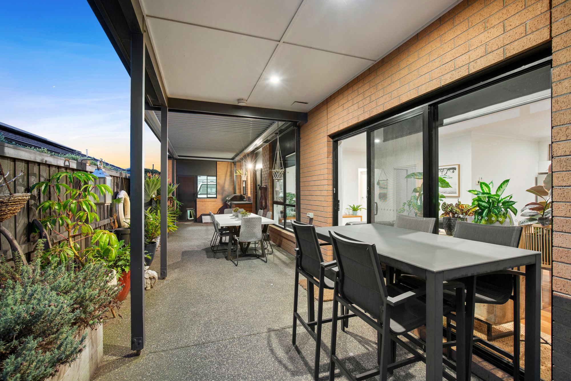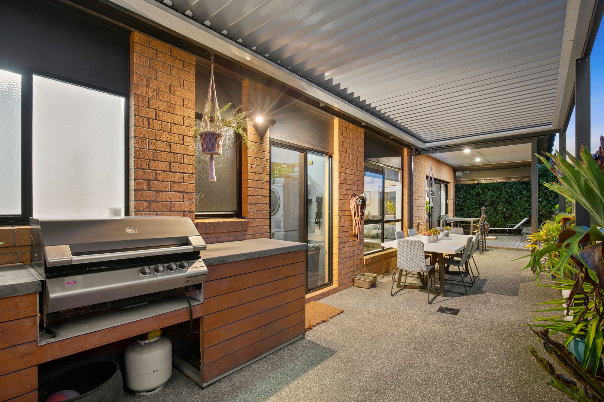 Outside: Automated louvre (rain sensored), Undercover alfresco, downlights, built in BBQ, aggregate path, deck, grassed area, garden shed, hedge privacy screening, low maintenance yard, clothes line, sensor lights