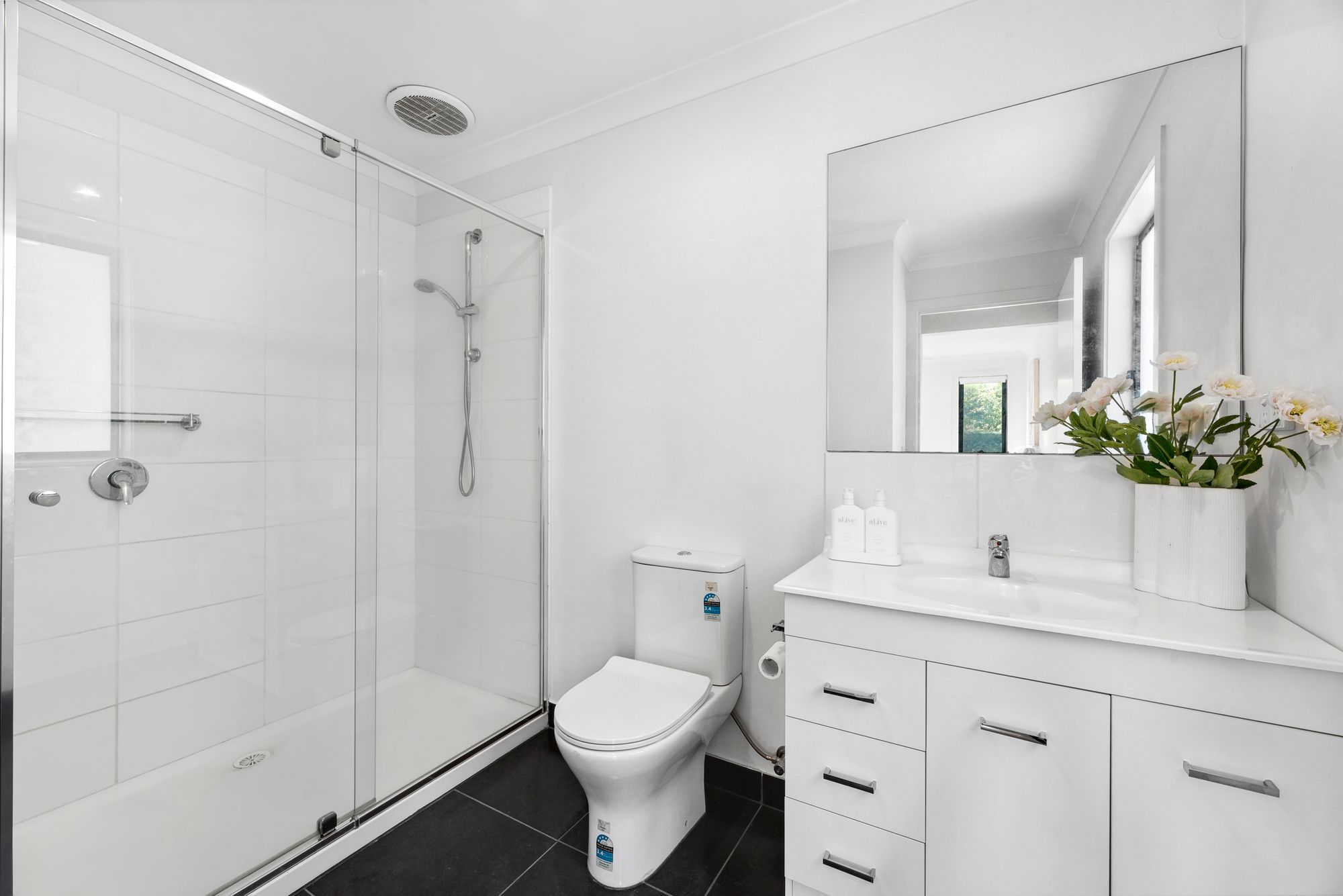 Master bedroom- carpet flooring, roller blinds, ceiling fan, walk in wardrobe, down lights. Ensuite: toilet, tiles, mirror splash back, semi frameless double shower, storage, ceramic single basin and single vanity.