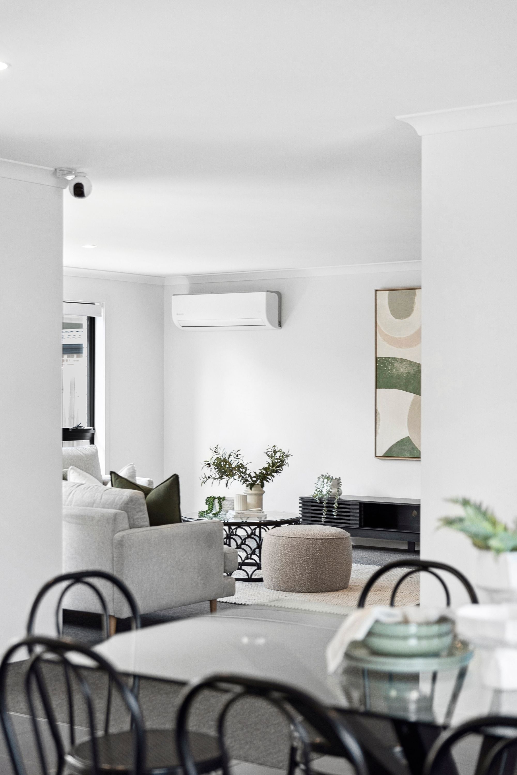 Living- open plan adjoining living/ dining/ kitchen, ducted heating, carpet flooring, split system heating & cooling, roller blinds, sliding glass doors through outdoor alfresco, downlights.