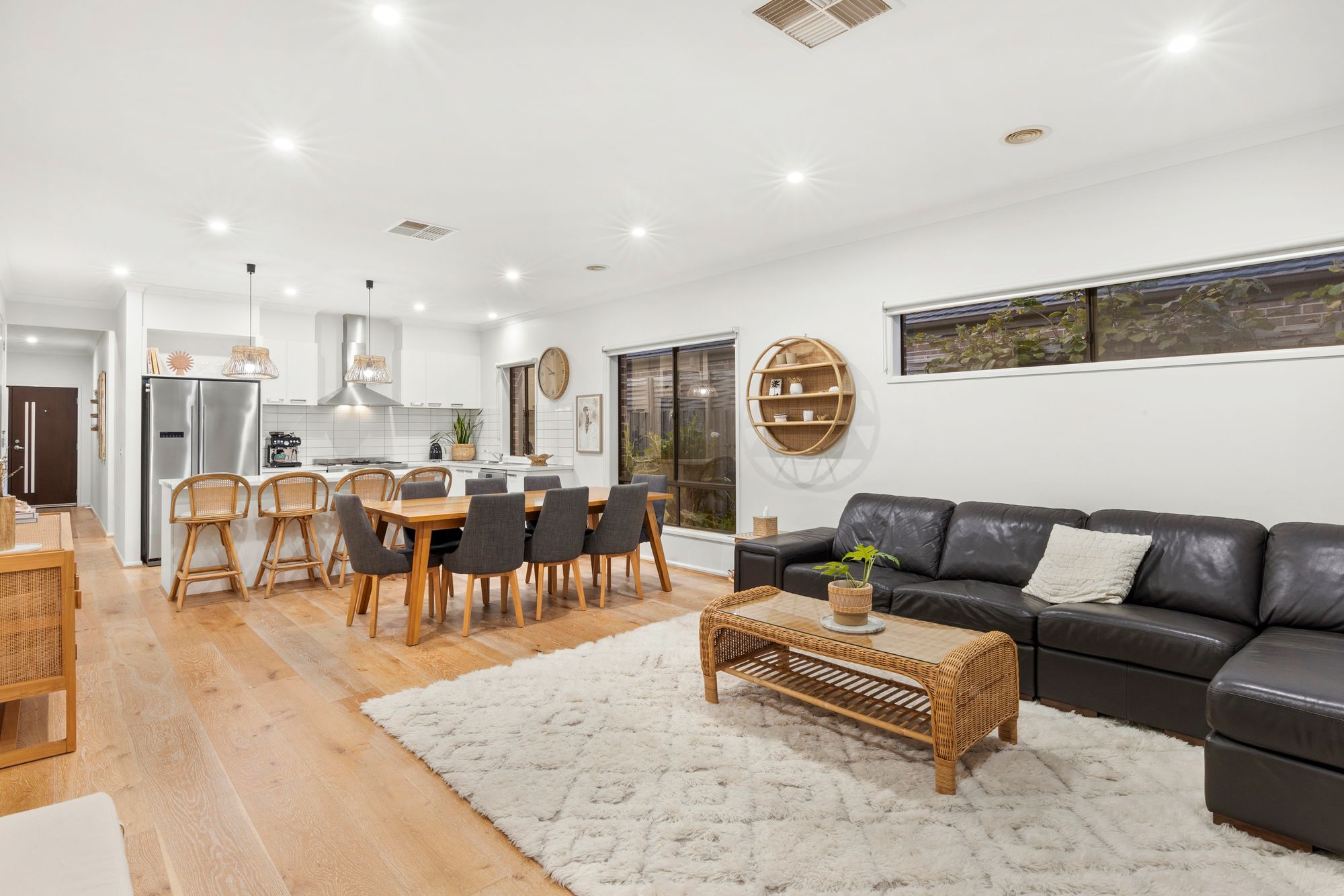 This modern and spacious family home caters to all the essentials for a growing family. Boasting a practical outdoor entertainment space, a great sized master bedroom with walk-in robes, and three additional bedrooms, each equipped with mirrored built-in wardrobes, ensuring all year comfort for the entire family with ducted heating and evaporative air-conditioning throughout. With two living areas and two well-appointed bathrooms, the home is designed for optimal family living. One highlight of this property is the stylish kitchen and dining area that’s elevated by the high ceilings (9ft), ideal for family gatherings, complete with a built-in pantry for ample storage. The seamless connection between the kitchen/dining/living area and the stunning outdoor entertainment space makes this home an ideal venue for hosting family and friends. Positioned in a superb and convenient location near Elements Child Care, Geelong Lutheran College, Warralily Boulevard Playground, Armstrong Creek Town Centre, Access to Surf Coast Highway, Geelong CBD short drive away, it provides easy access to Geelong, Torquay, and the entire Surf Coast. Embrace a lifestyle like no other in this fantastic locale.