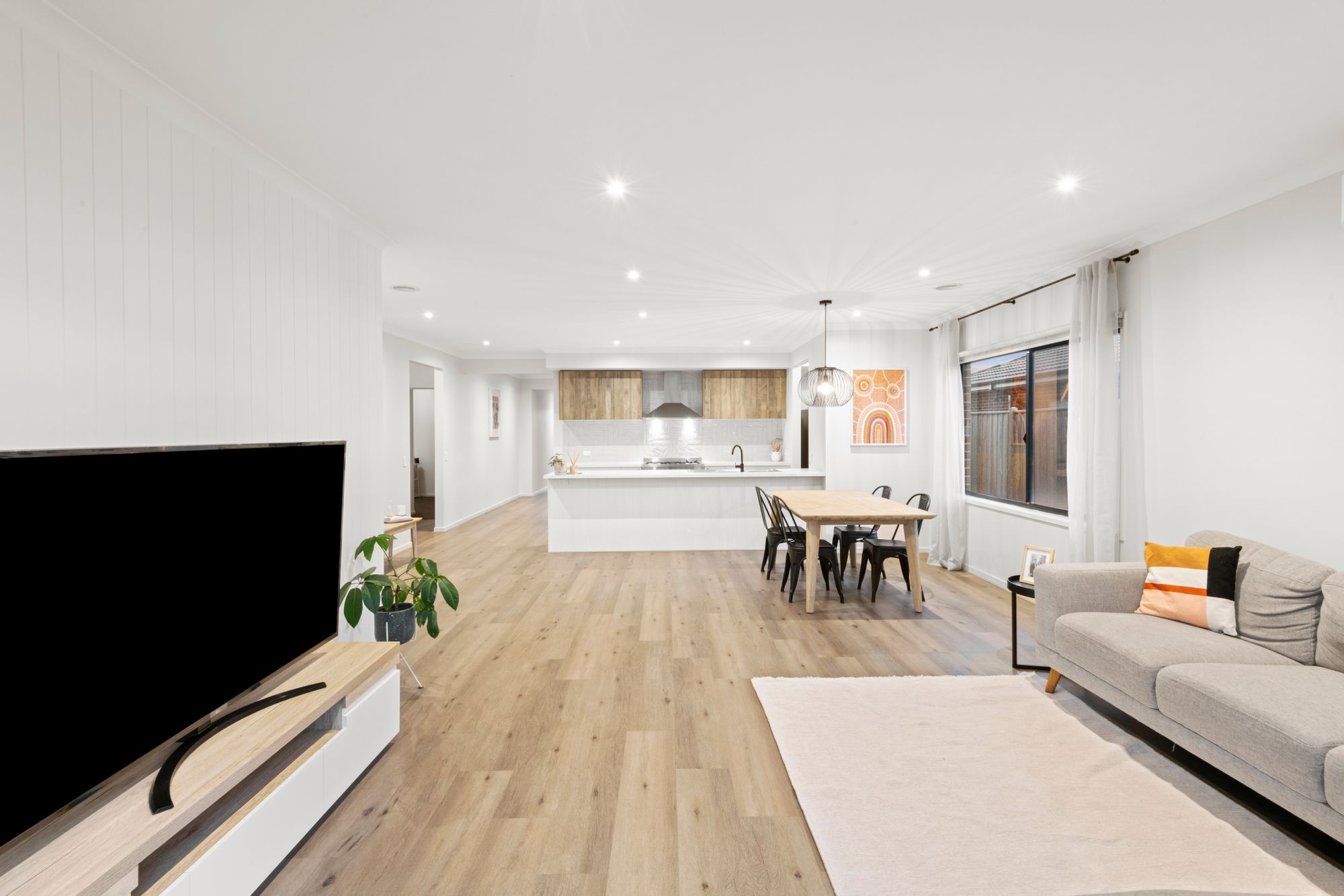 This perfect family home has everything you are looking for with desirable upgrades in a tranquil location! With local parks and beautiful wetlands being just a short walk away, as well as just a few minutes drive to both Geelong CBD and the Surf Coast – this home caters to all lifestyles. The design offers space and convenience with 4 generously sized bedrooms, 2 living spaces and an open plan kitchen and dining area which creates a seamless flow to the large backyard. This home is a dream for entertainers with the ability to exercise the generous space on offer internally and externally!