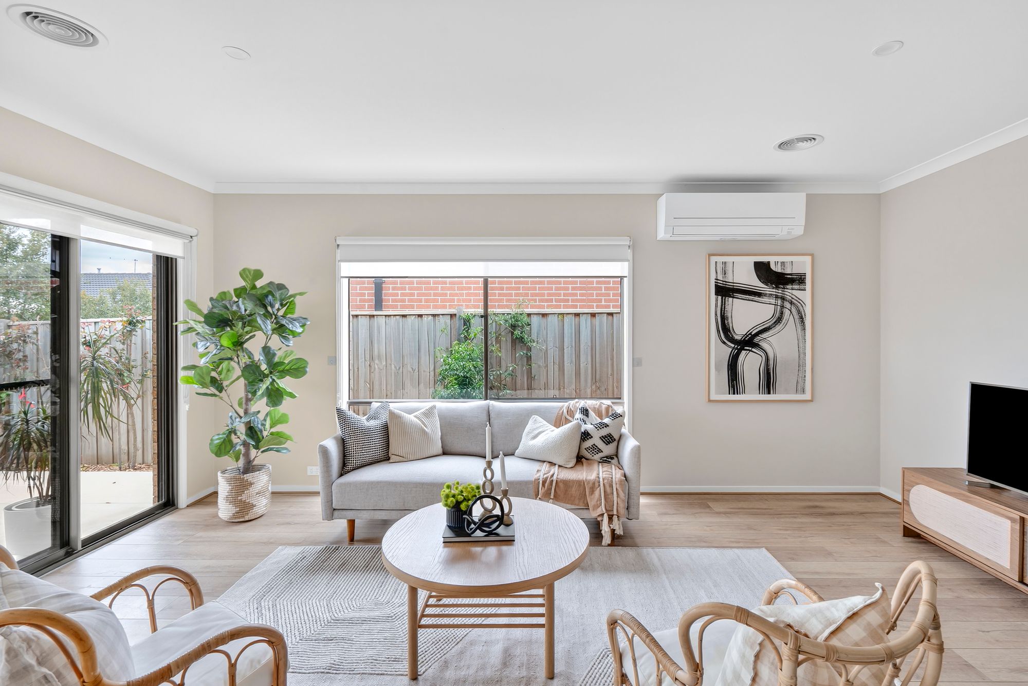 Additional Living Space: At the rear of the home, an additional living area offers flexibility for a family room, home office, or media space. High ceilings, downlights, and wide windows with dual blinds complement the abundant natural light, while glass sliding doors open to the backyard. Ducted heating and split-system cooling are included for year-round comfort.