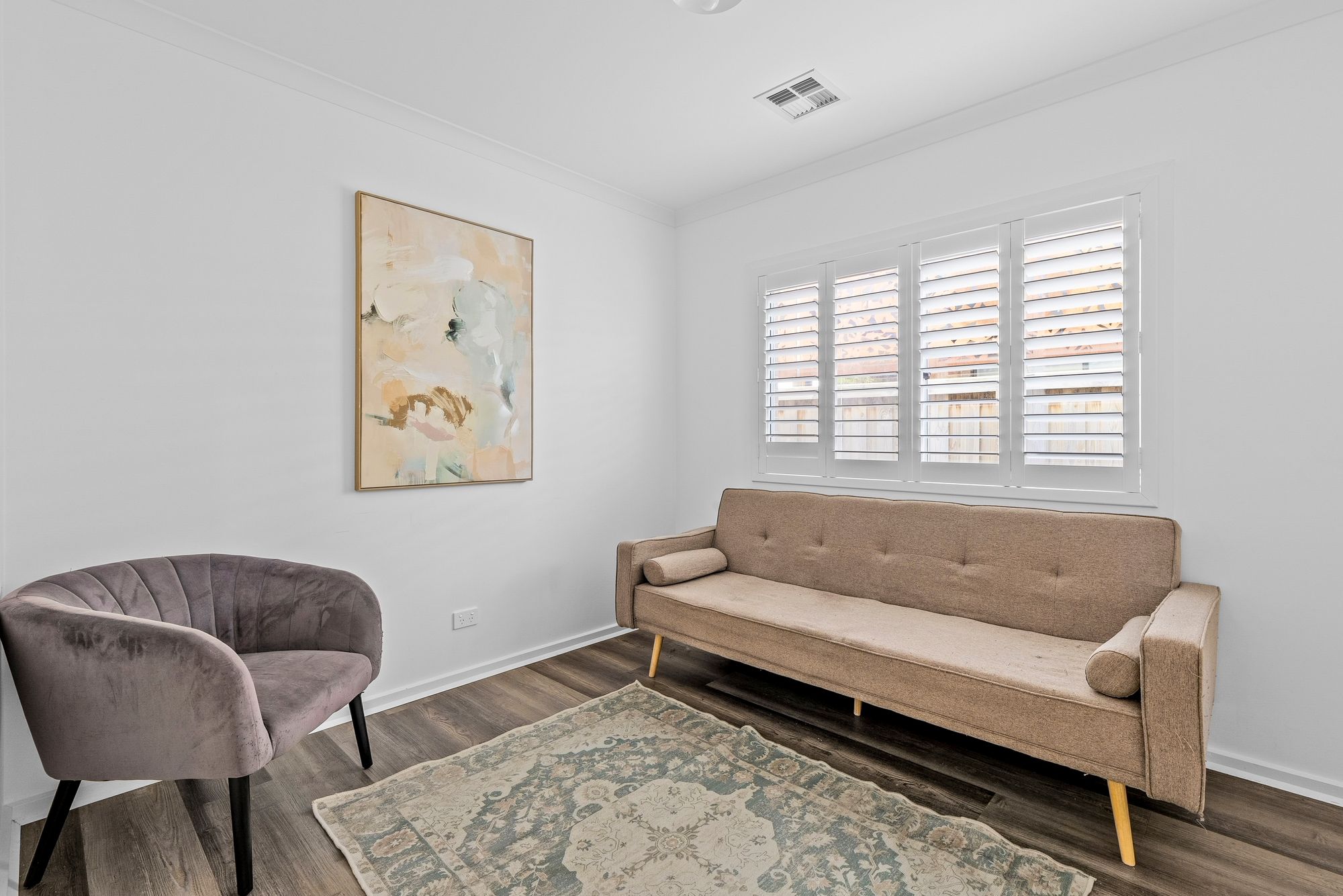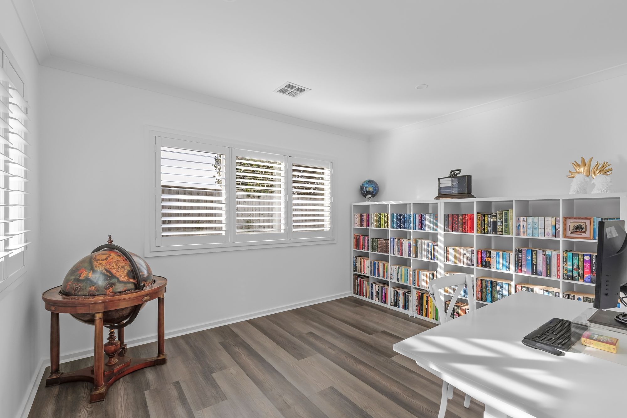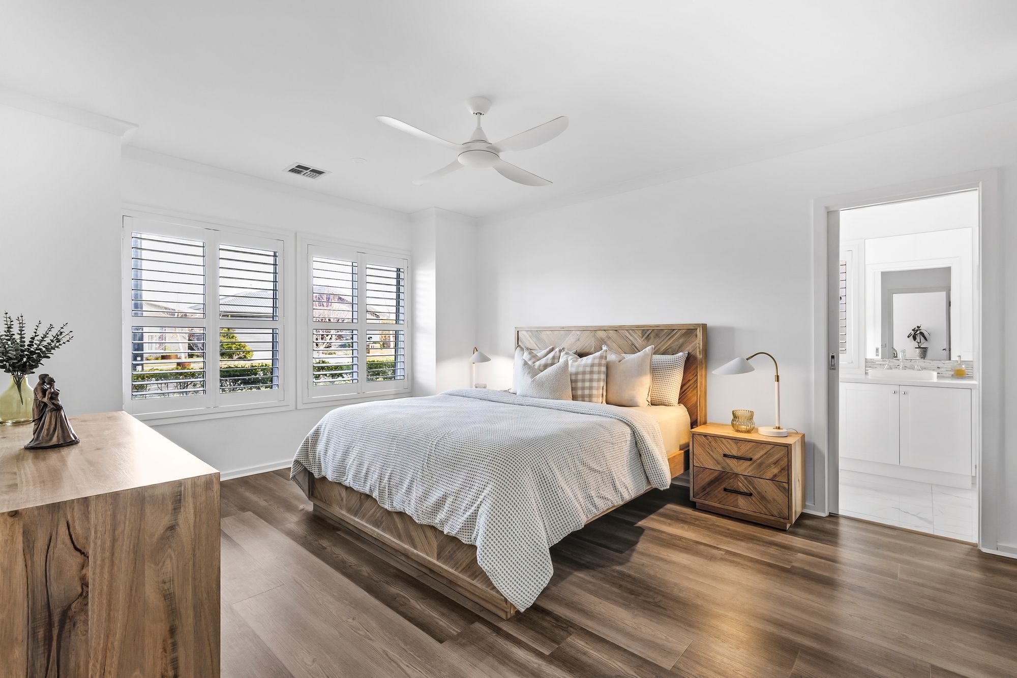 Master Suite: Shutters, double glazed front windows, spacious, walk-in robe with dedicated Built-in Vanity, refrigerated heating and cooling, hybrid flooring, downlights, power points.