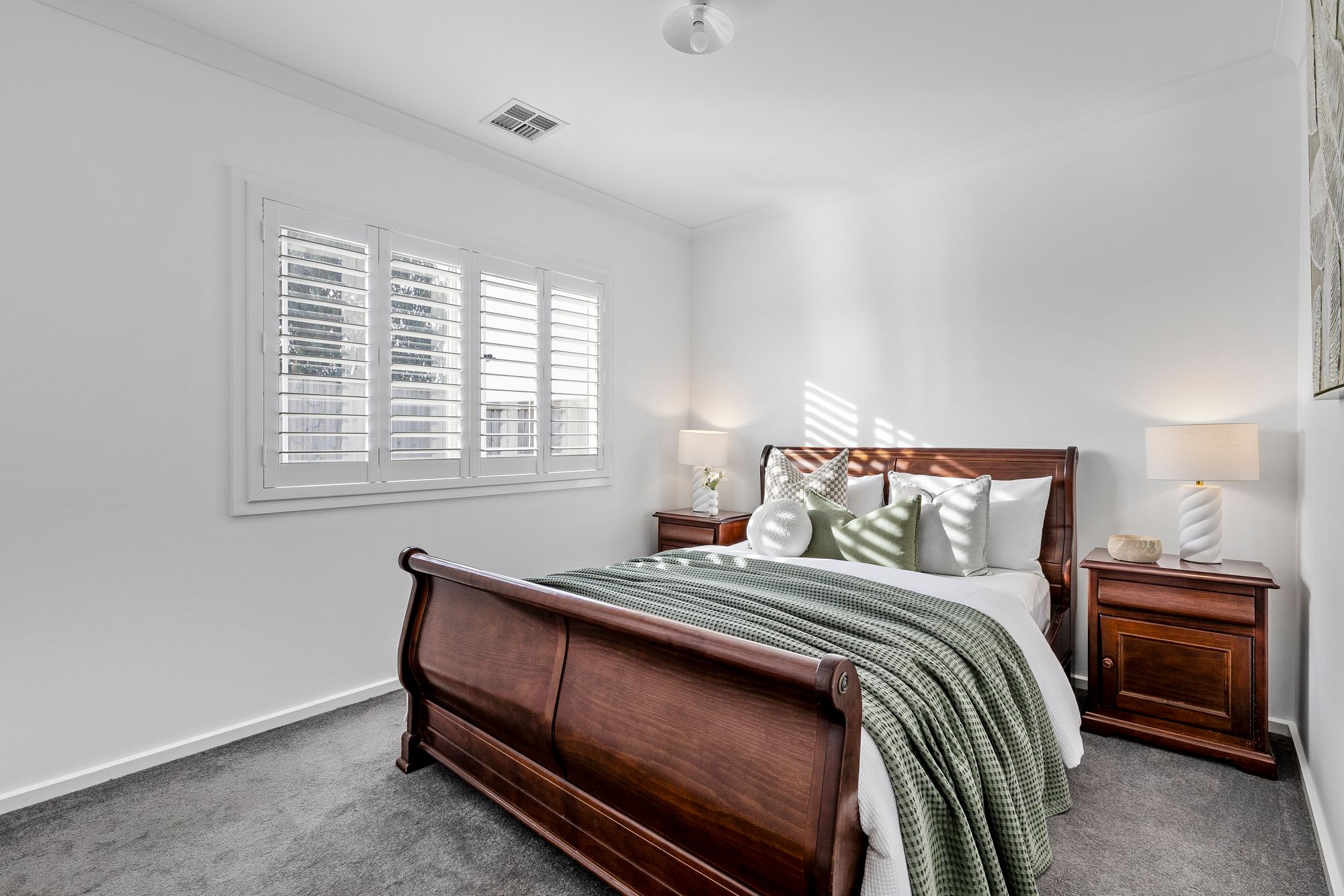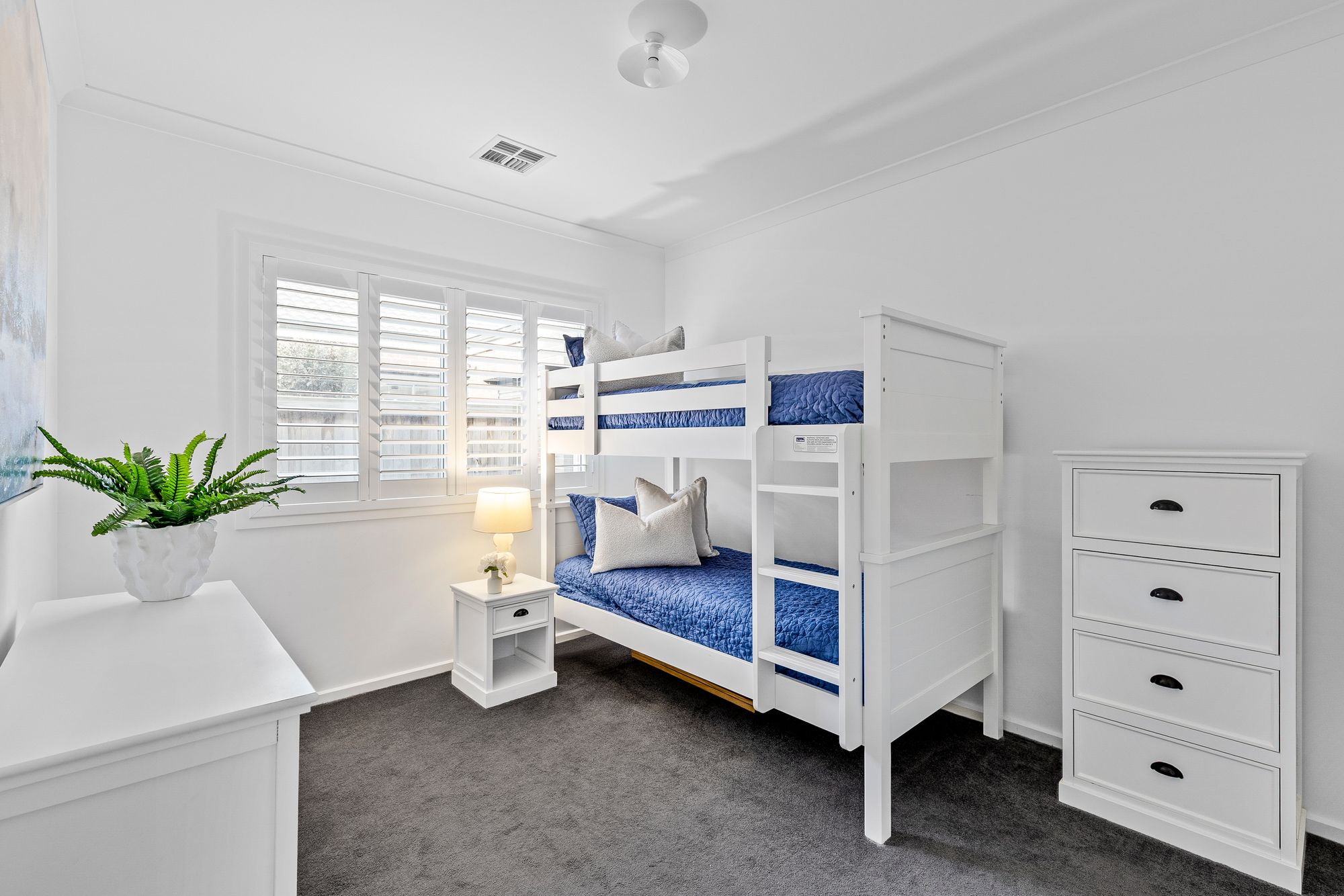 Bedrooms 2&3: Carpeted, built-in sliding vinyl robes, windows with shutters, refrigerated heating and cooling.