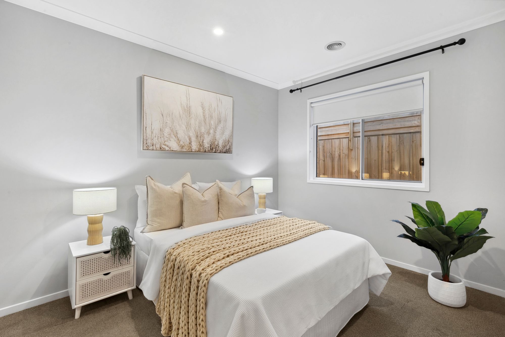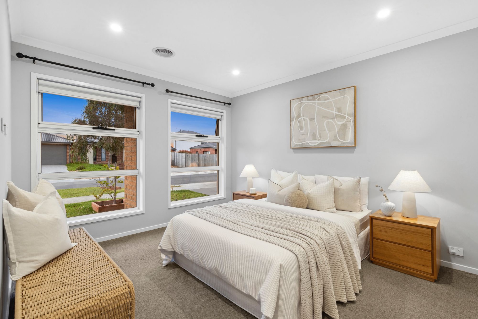 Additional bedrooms: Spacious, mirrored sliding robes, carpet, roller blinds, ducted heating, curtain provisions, downlights.