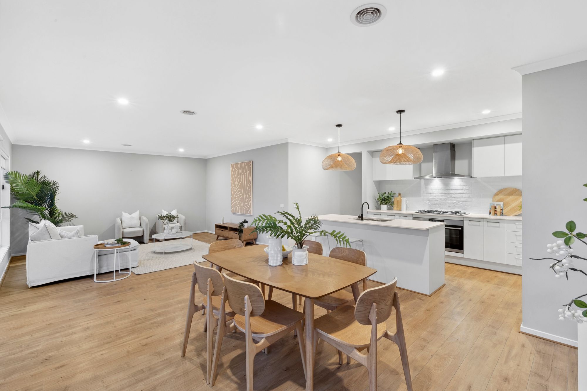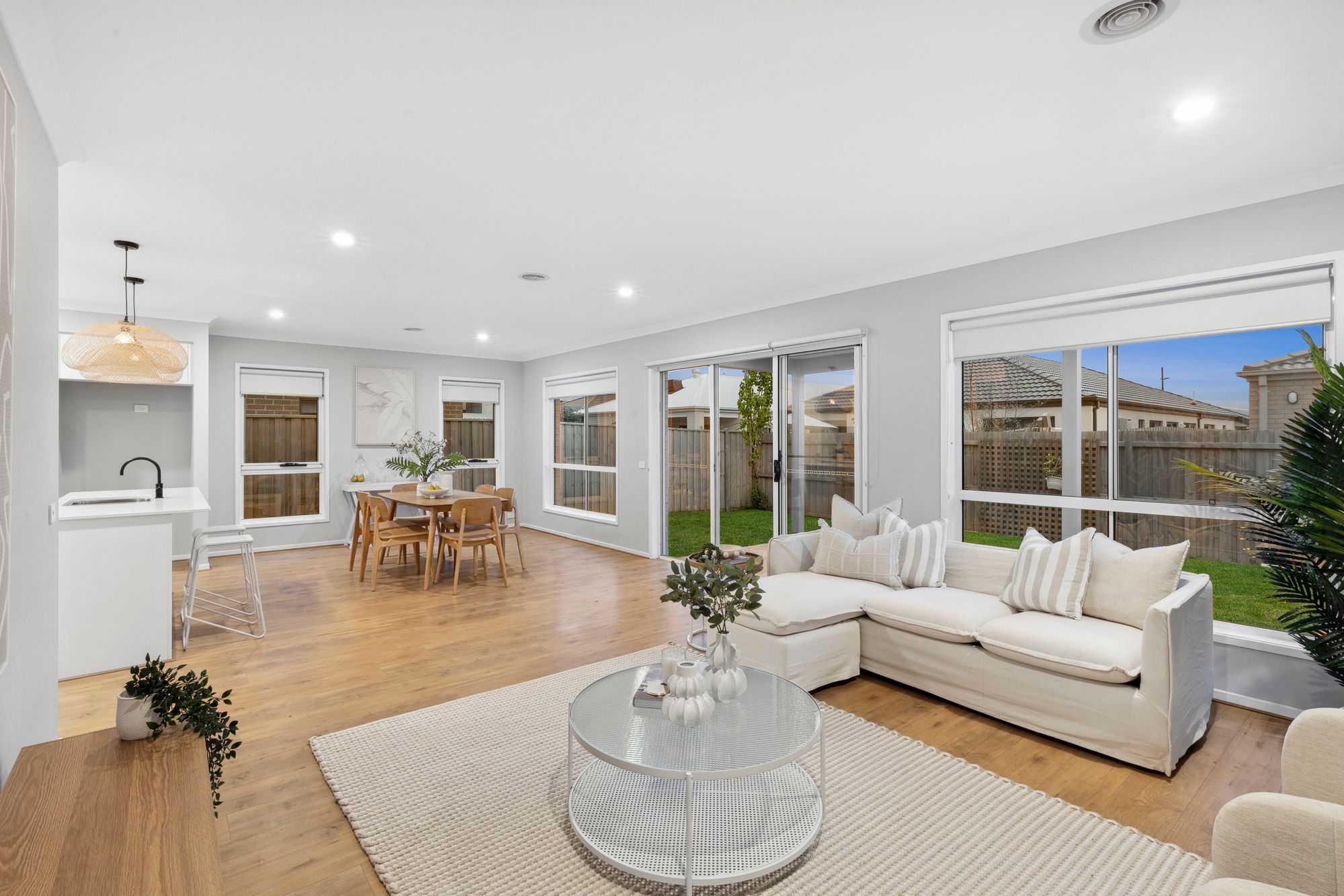 Living/dining: Open plan living, sliding doors to outdoor entertaining area, ducted heating, dedicated dining, hybrid floors, downlights, tv point, roller blinds.