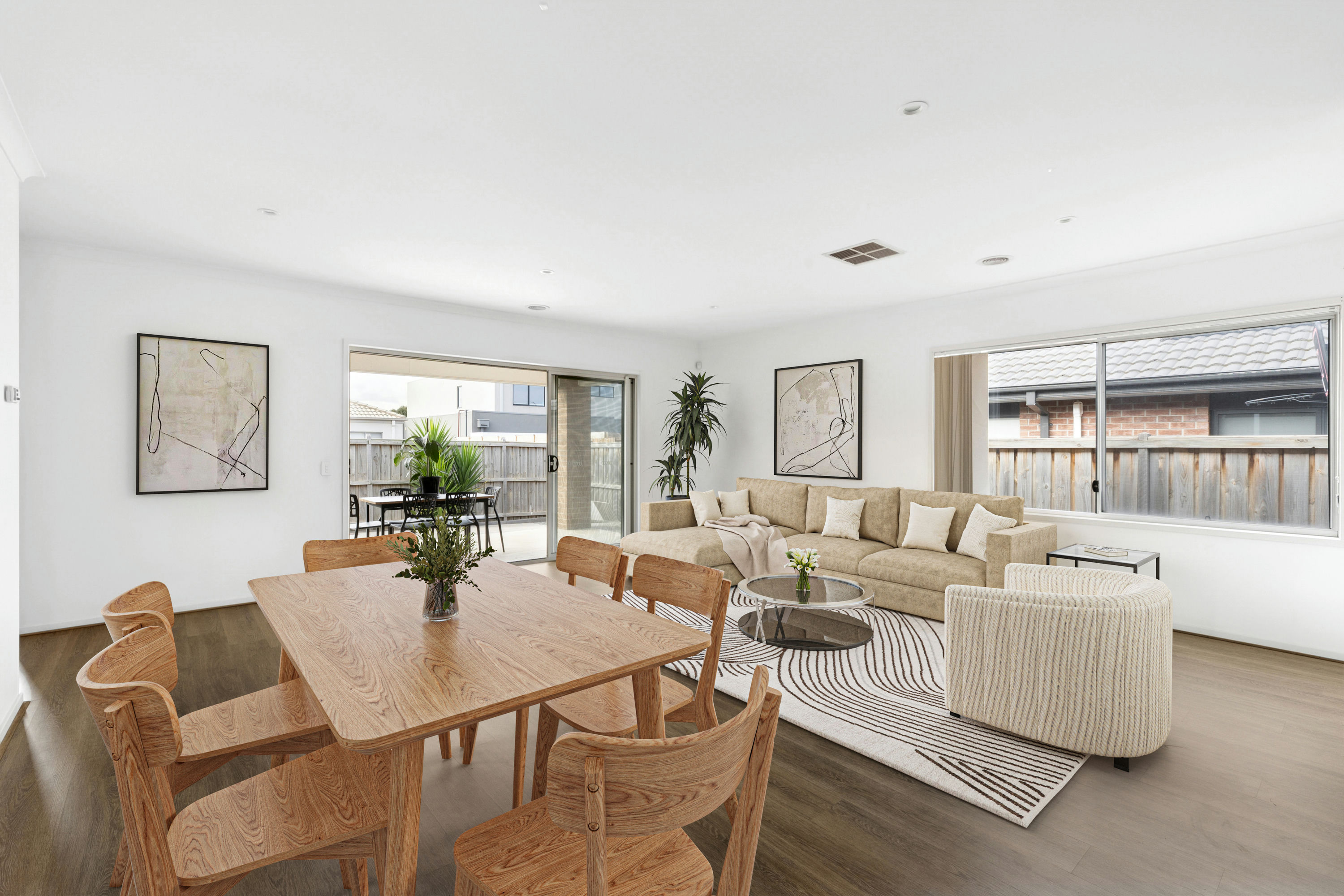 Nestled in the vibrant Armstrong Estate, this stylish home offers the perfect blend of modern living, community charm, & functionality. Perfectly designed for young families, first home buyers and investors, this 4 bedroom home with 2 designated living zones boasts spacious interiors, quality finishes, and a thoughtfully planned layout for comfort and convenience. Seamlessly extending from the contemporary interiors, sliding stacker doors open to an undercover alfresco, delivering the ultimate indoor-outdoor lifestyle. Take a short drive to amenities such as the Armstrong Creek Town Centre, The Village Warralily, ring road to Melbourne, Geelong CBD and Surf Coast, whilst enjoying endless walking tracks at your disposal. Offering a lifestyle enriched by all the advantages this beautiful community has to offer – the perfect first home or investment opportunity awaits!