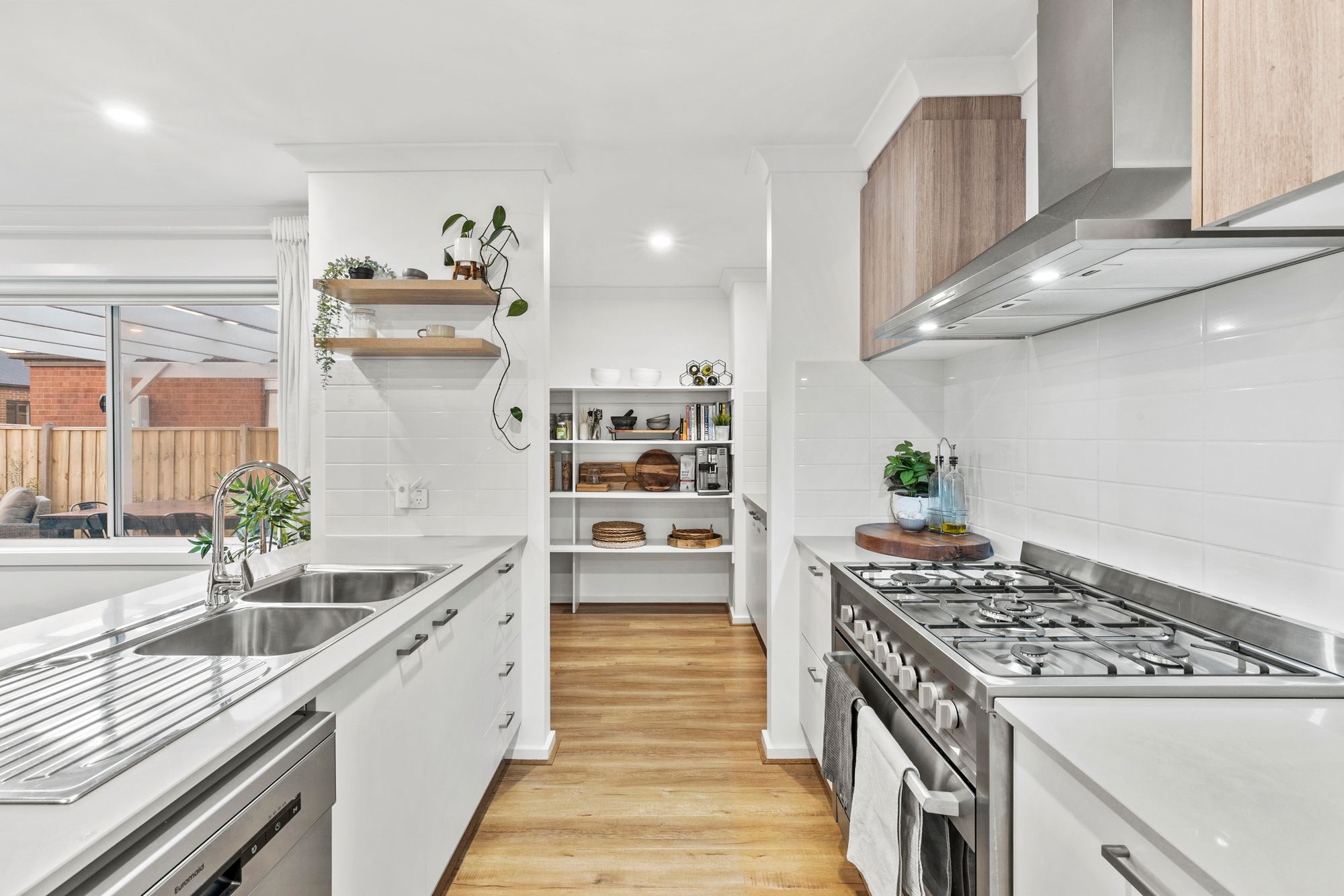 Mod cons: Stylish colour palette and fitout throughout, modern and upgraded appliances, 20mm stone benchtops in the kitchen. Sheer curtains, plantation shutters and roller blinds throughout. Large walk-in pantry with additional cabinetry and shelving. Laundry with trough, ample storage and two built-in linen cupboards. Downlights and ducted heating throughout. Substantial decked area and pergola to the North side of the home. Double car garage with secure parking for an extra vehicle behind the gate on the North side.