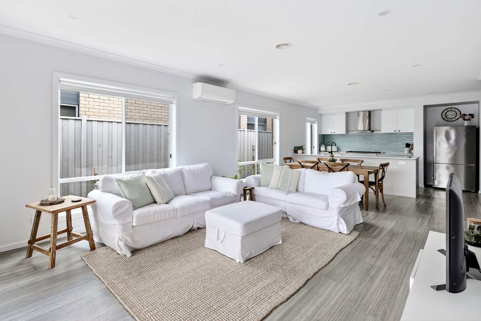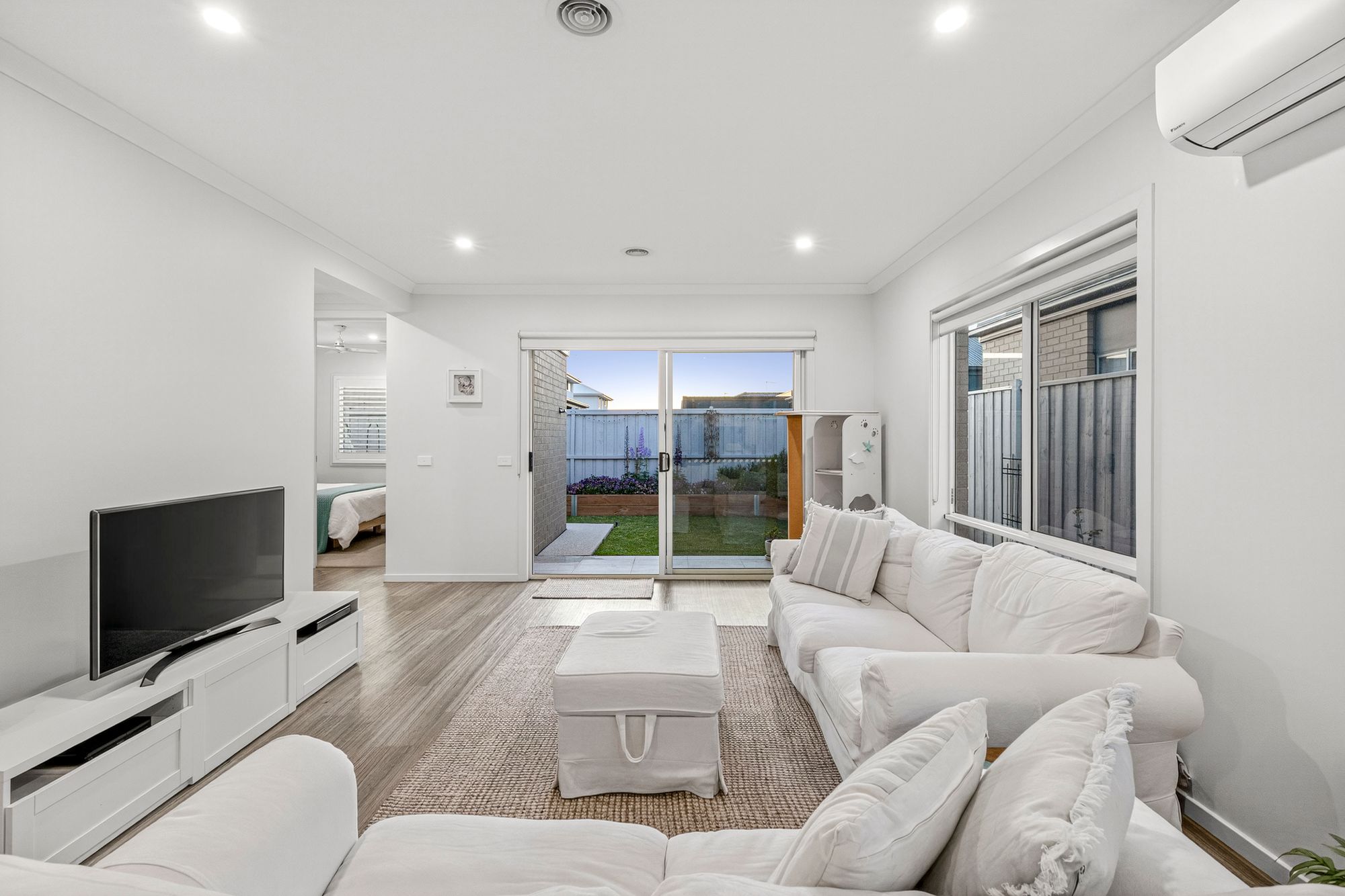A beautifully appointed coastal retreat in the heart of Armstrong Creek’s Anchoridge Estate, where style, comfort, and quality upgrades come together effortlessly. This stunning home showcases a relaxed modern design with high ceilings, plantation shutters and timeless finishes throughout. Every detail has been thoughtfully considered—from the premium Fisher & Paykel stove and Miele dishwasher to the soft-close cabinetry, skylights and landscaped gardens. Perfectly positioned opposite parkland and surrounded by walking tracks, this home offers a seamless blend of coastal living and everyday convenience—ideal for downsizers, couples, or young families seeking an elevated modern and coastal lifestyle.