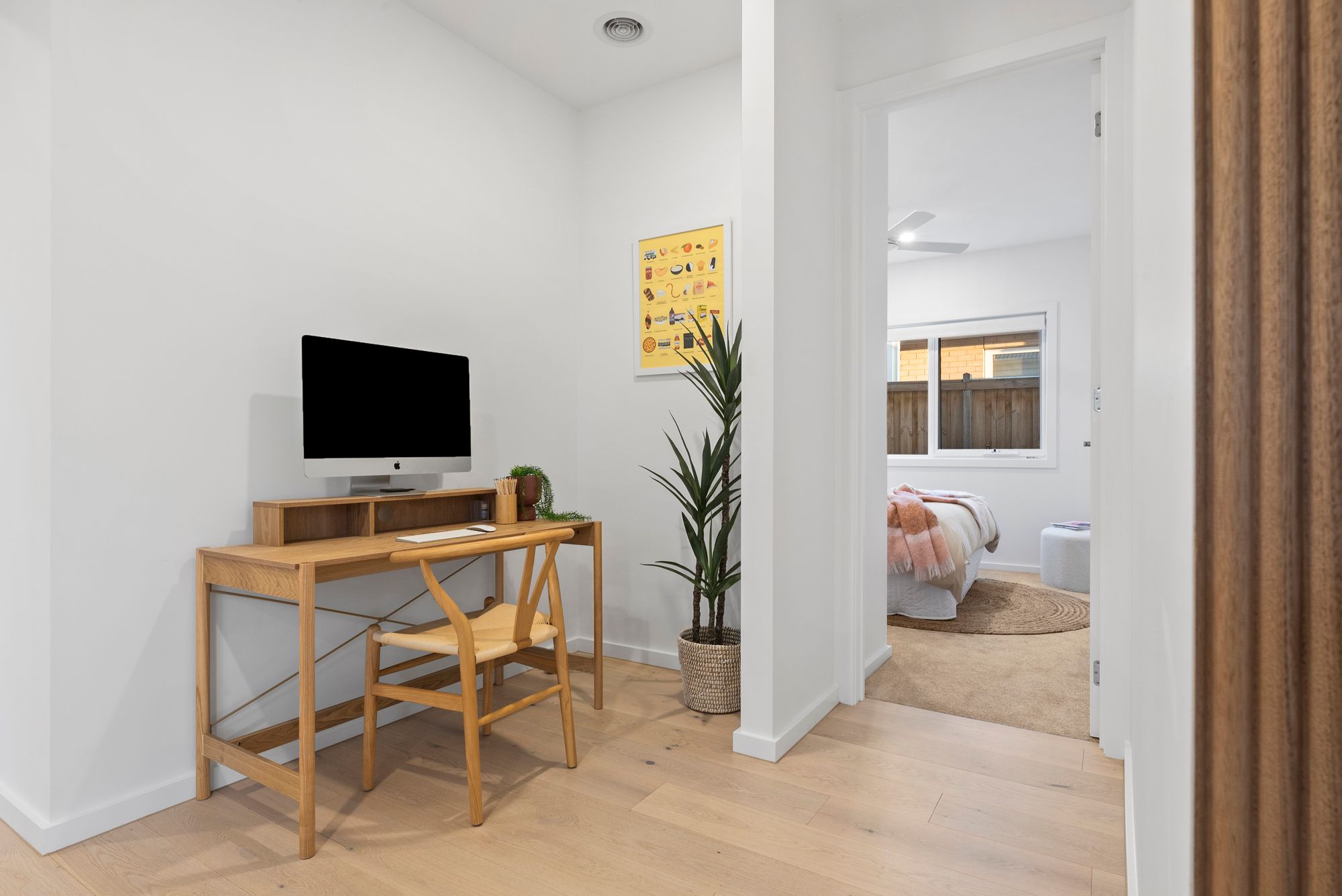Mod cons: high grade carpet & underlay, square set cornices, raised ceiling heights, feature panelling doors, NBN/Opticomm access, powder room, downlights throughout, ducted heating throughout & evaporative cooling, shutters, floor to ceiling sheer curtains, double glazed windows, gold fixtures and fittings, double lock up garage with automatic roller door, internal & external access, laundry with tiles, extended bench top, ample storage including linen press & access to backyard, study nook, ceiling fans in bedrooms