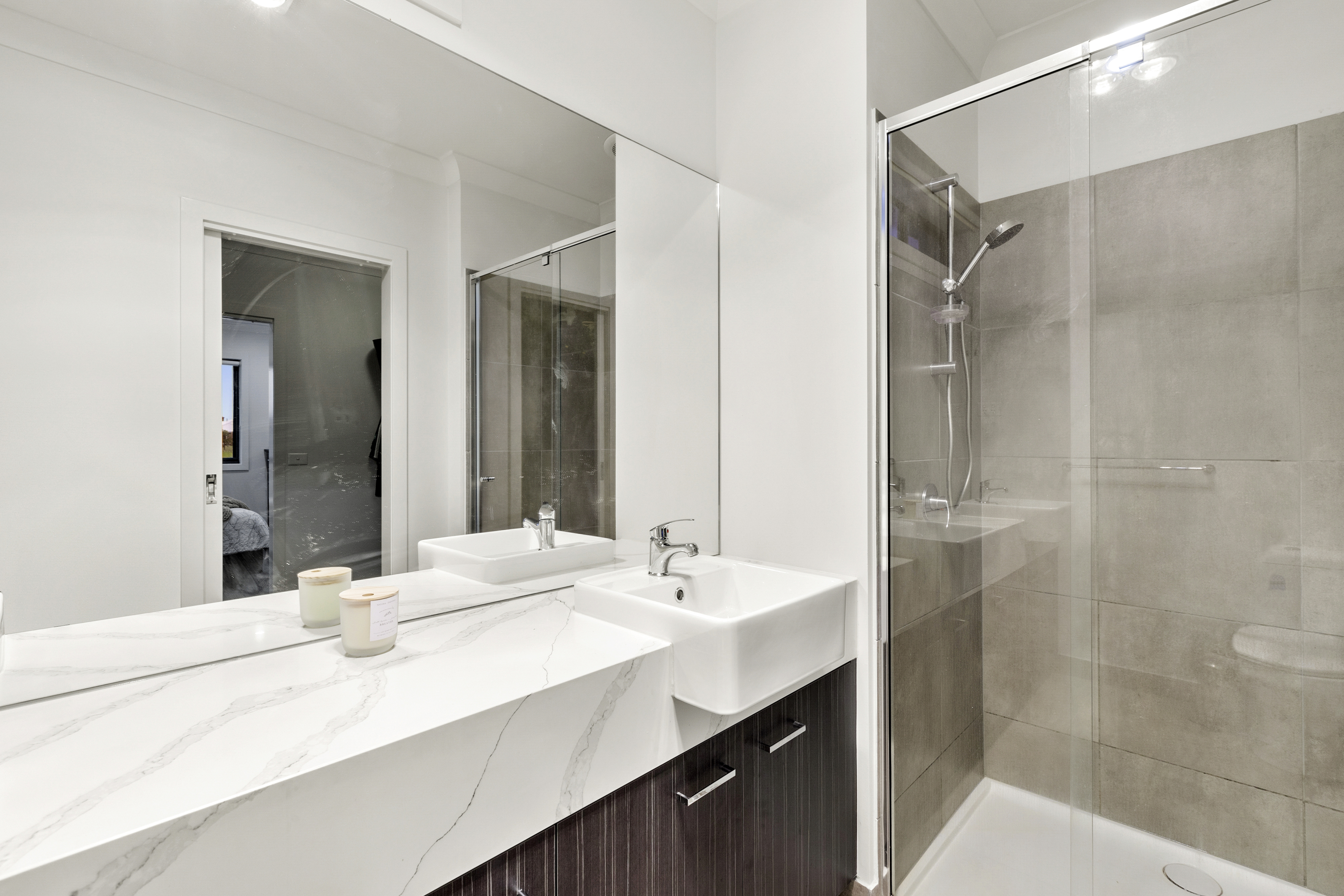 Ensuite: large ensuite with extended shower, chrome fittings, stone benchtop, twin vanity with dual basins, large mirror