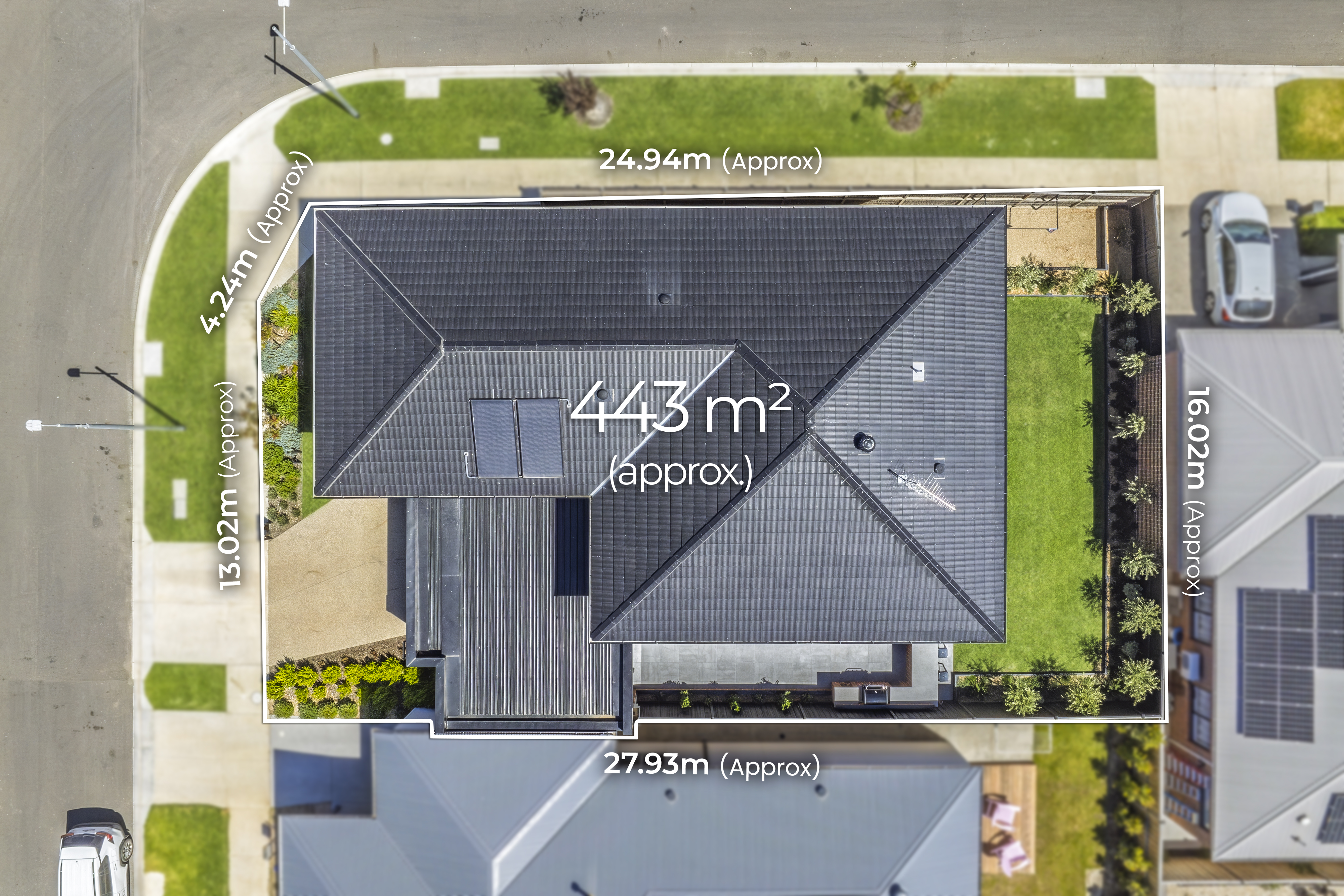 Outdoor: The home presents a grand façade complemented by exterior lighting, manicured gardens, lush grassed areas, and established garden beds with mature trees and plants. An exposed aggregate driveway and entry create an impressive arrival, while gated side access provides convenient entry to the rear yard. The expansive North-West facing rear yard is an entertainer’s dream, featuring an incredibly paved undercover alfresco and outdoor entertaining area complete with built-in barbecue and generous bench space. Manicured garden beds, established plants, and lush grassed areas provide space for both entertaining and family enjoyment. A shed and clothesline are conveniently positioned along the southern boundary, providing practical outdoor storage and everyday functionality for the modern family. Rear roller door access from the garage leads to a paved concrete pad, offering additional secure vehicle or trailer storage.