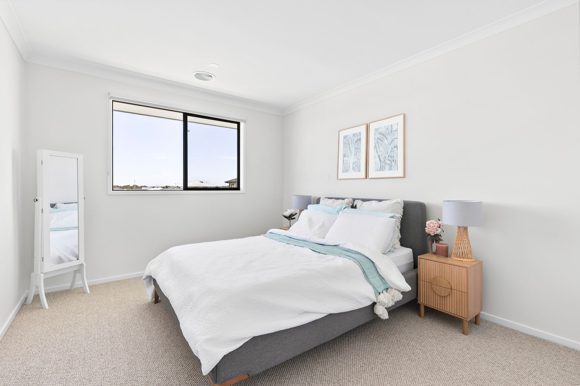 Additional Bedrooms: The additional bedrooms are generously sized and thoughtfully designed, each offering soft carpeting, pendant lighting, and walk-in robes for ample storage. Wide windows fitted with roller blinds allow plenty of natural light, while refrigerative heating & cooling provide consistent comfort throughout the seasons.