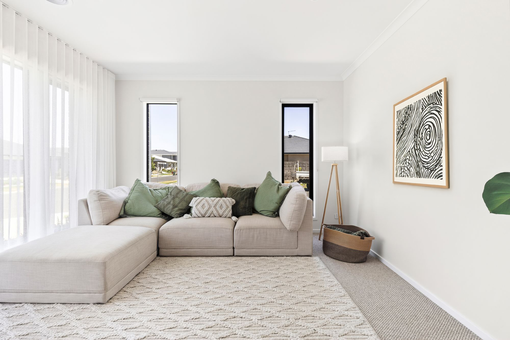 Additional Living Spaces: The home offers multiple living zones across both levels, ideal for growing families. The first living space, located on the ground floor, features high ceilings, high-end carpets, and a combination of roller blinds and sheer curtains, creating a comfortable retreat for everyday living. The second living space, positioned on the upper level, continues the theme of quality with high ceilings, lush carpeting, VJ panelling feature wall, and windows dressed with sheer curtains. Both living areas are serviced by refrigerative heating & cooling, ensuring comfort throughout the year.