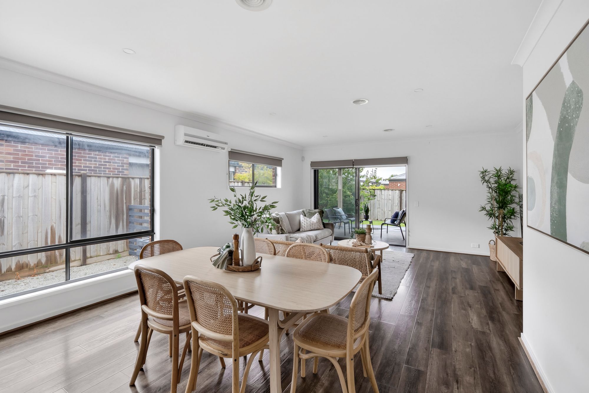 Open Plan Living/Dining: Large in all proportions and versatile in use. Ample natural light from the wide, North-facing windows complete with blockout blinds. Downlights, ducted heating and split-system cooling cooling, direct access to the decked, undercover alfresco and East-facing rear yard.