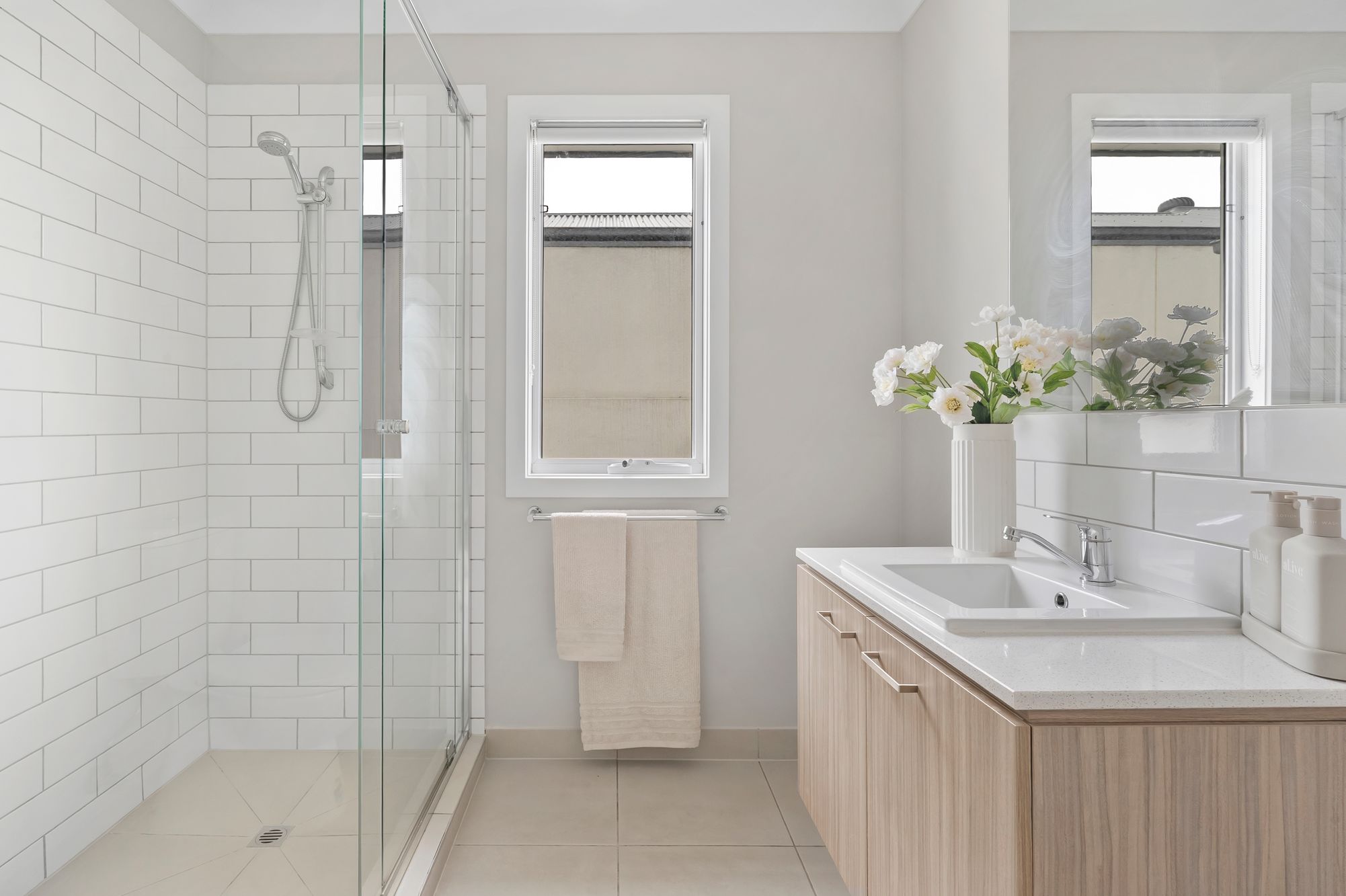 Thoughtfully designed with a refined neutral palette and high-quality finishes throughout, the home showcases a light-filled open-plan kitchen, living and dining domain. High ceilings, feature downlights and split system heating and cooling enhance the sense of space and year-round comfort, while glass sliding doors create a seamless connection to a private, secure grassed courtyard — perfect for relaxed outdoor living.