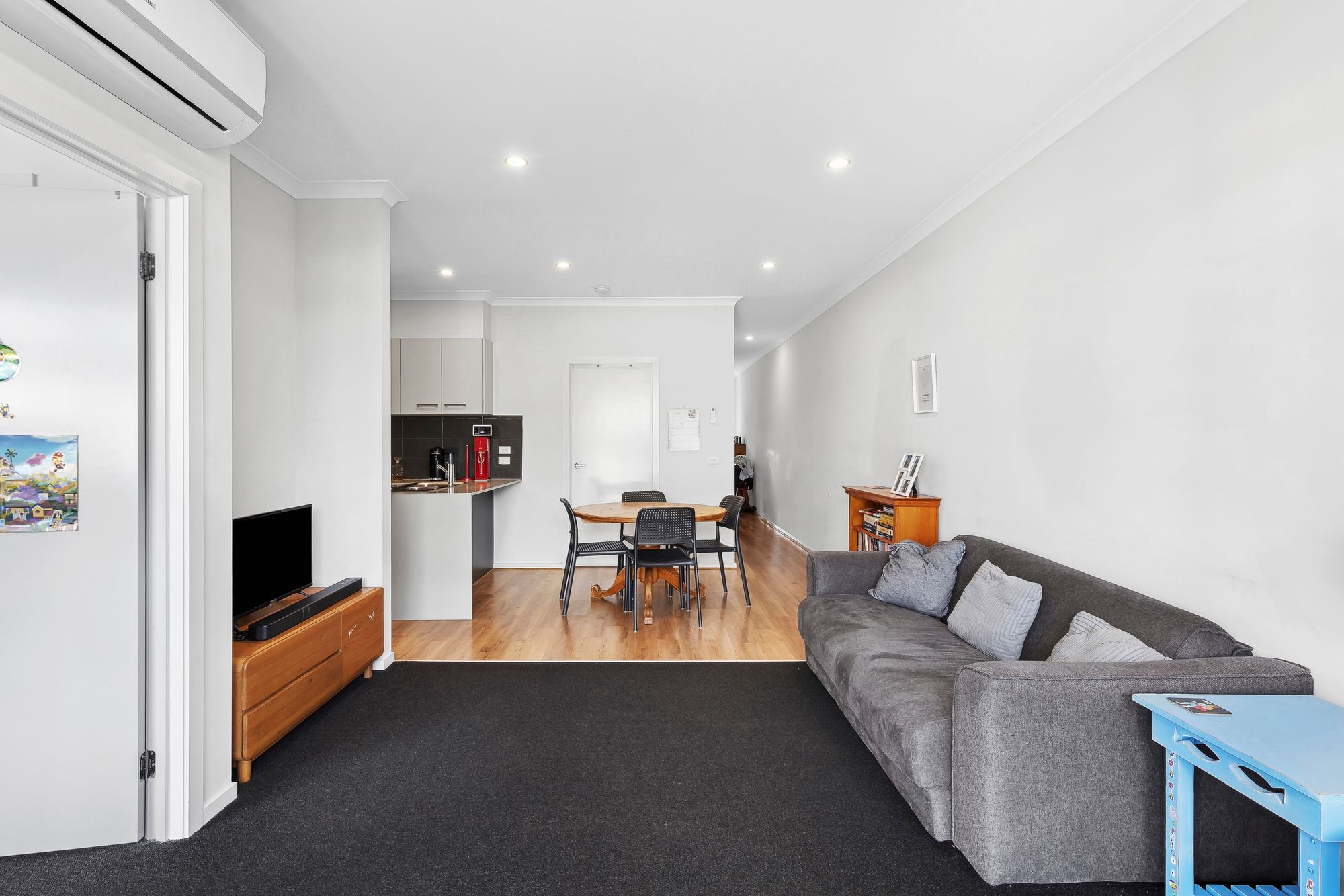 Mod cons- ducted heating throughout, timber laminate flooring in main living, dining & kitchen with European laundry in kitchen enclosed with sliding doors, carpeted flooring in all bedrooms, raised ceilings, split system in living area