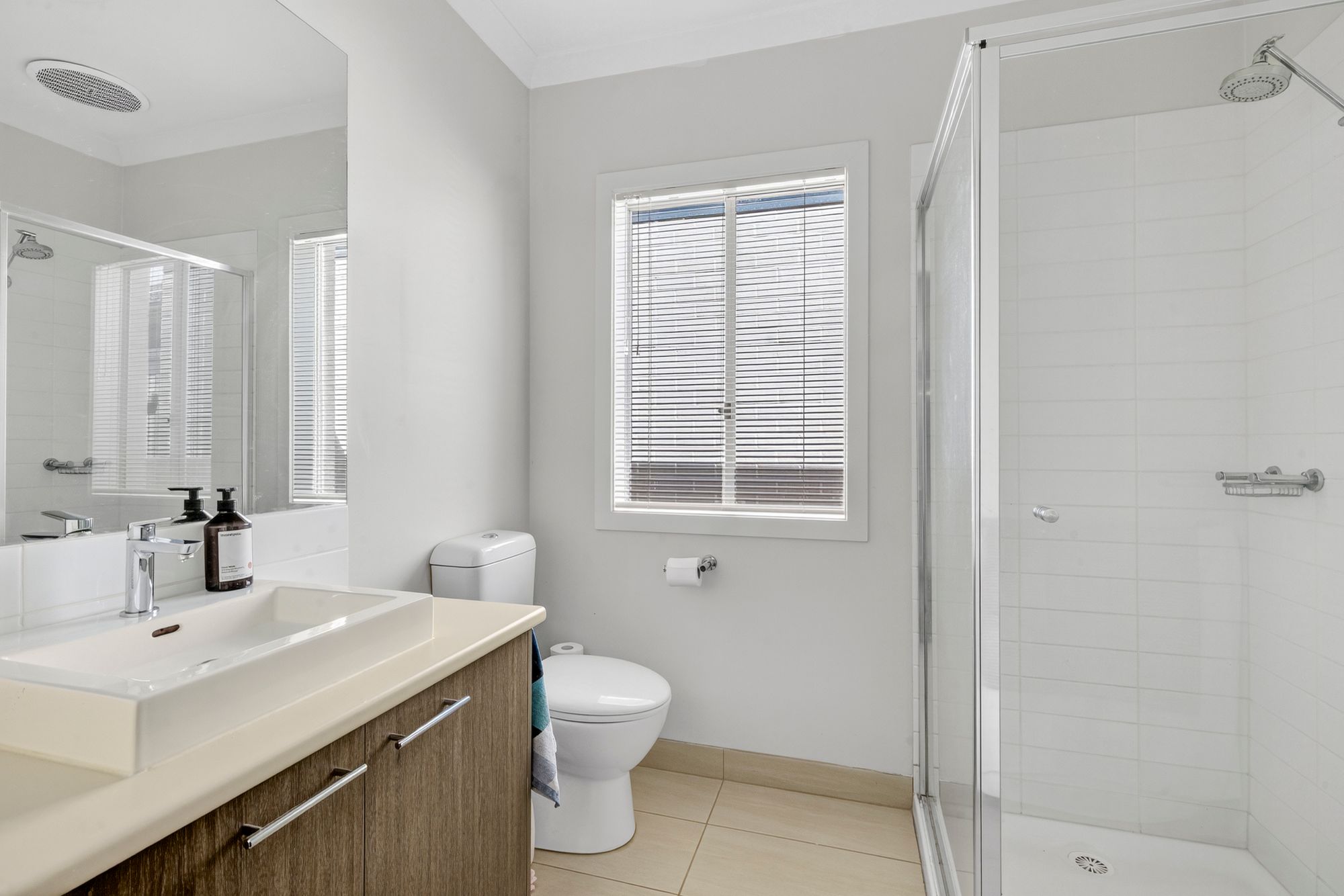 Master Suite: Positioned at the front of the home, the master suite enjoys a north-facing aspect and is fitted with soft carpet, wide windows with roller blinds and ducted heating. A spacious walk-in robe offers excellent storage, while the stylish ensuite includes a single vanity with basin, large mirror, tiled splashback, shower with wall-mounted showerhead and a toilet for complete convenience.