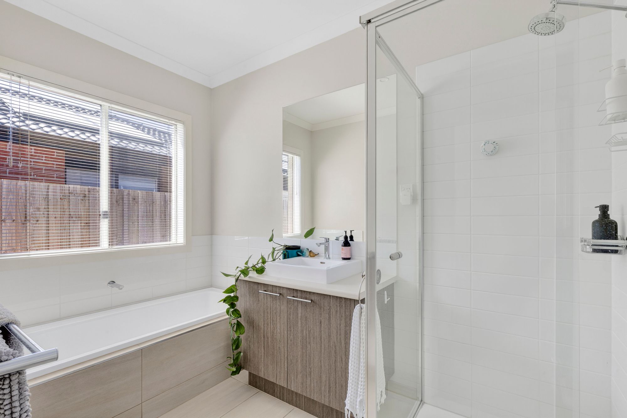 Additional Bathrooms: The main bathroom is both practical and elegant, complete with a single vanity and basin, raised bath and tiled mirrored splashback. Natural light flows through a wide window with venetian blinds, while a separate shower with wall-mounted showerhead and a separate toilet cater to busy family schedules.