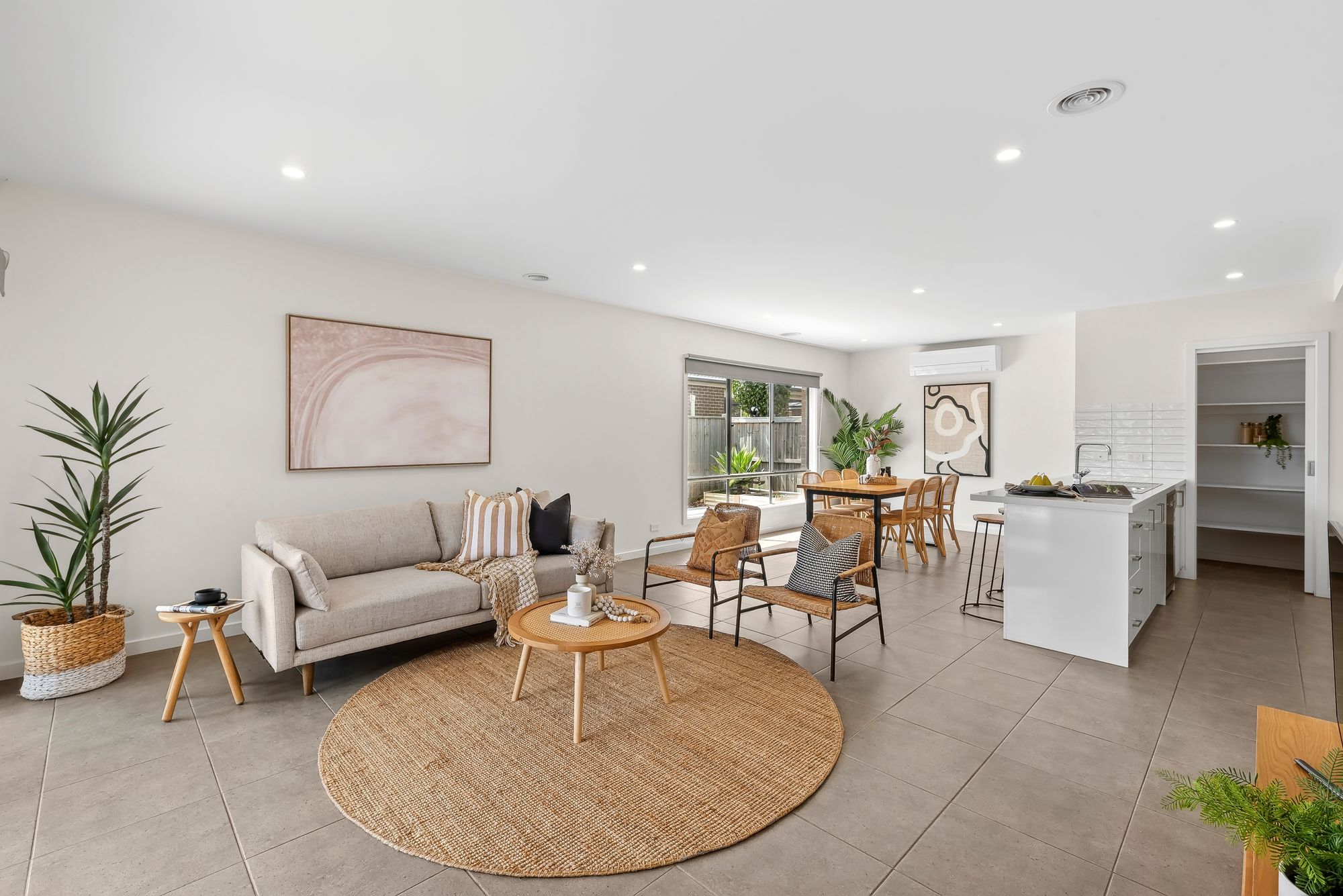 An incredible opportunity awaits to purchase a low maintenance family home which caters to all the essentials for first home buyers, downsizers and investors alike. The home features a stylish façade on a corner block, fantastic sized rear yard with concrete pathways surrounding the home. Ensuring all year comfort for the entire family with ducted heating throughout as well as split-system heating/air-conditioning to the shared kitchen, living and dining area. With four spacious bedrooms, all with built-in robes, master bedroom with ensuite and walk-in robe, bathroom with separate toilet and great sized laundry, the home is designed for optimal family living. The stylish kitchen boasts 40mm stone benchtop to the front and rear bench with timeless cabinetry and tiled splashback, complete with a walk-in pantry for ample storage. The seamless connection between the kitchen/dining/living area and the outdoor entertainment space makes this home an ideal venue for hosting family and friends. Positioned in a superb and convenient location near Armstrong Creek Town Centre, Local cafes and restaurants, Mirripoa Primary School, Geelong Lutheran College, Bunjils Nest District Park, Pencil Park, Sporting grounds, Waurn Ponds Train station (approx. 5 minute drive) Marshall Train station (approx. 10 minute drive), Easy access to the Geelong Ring Road and the Surf Coast Highway.