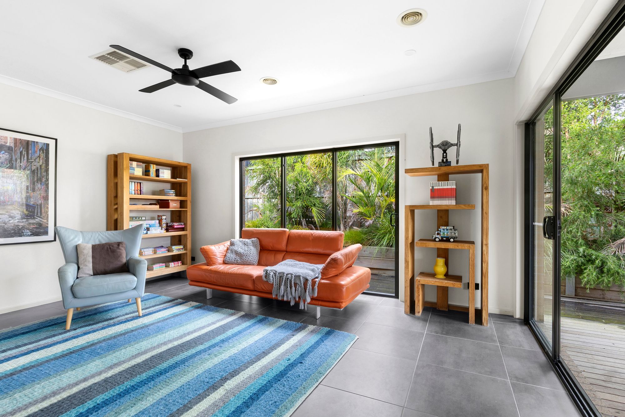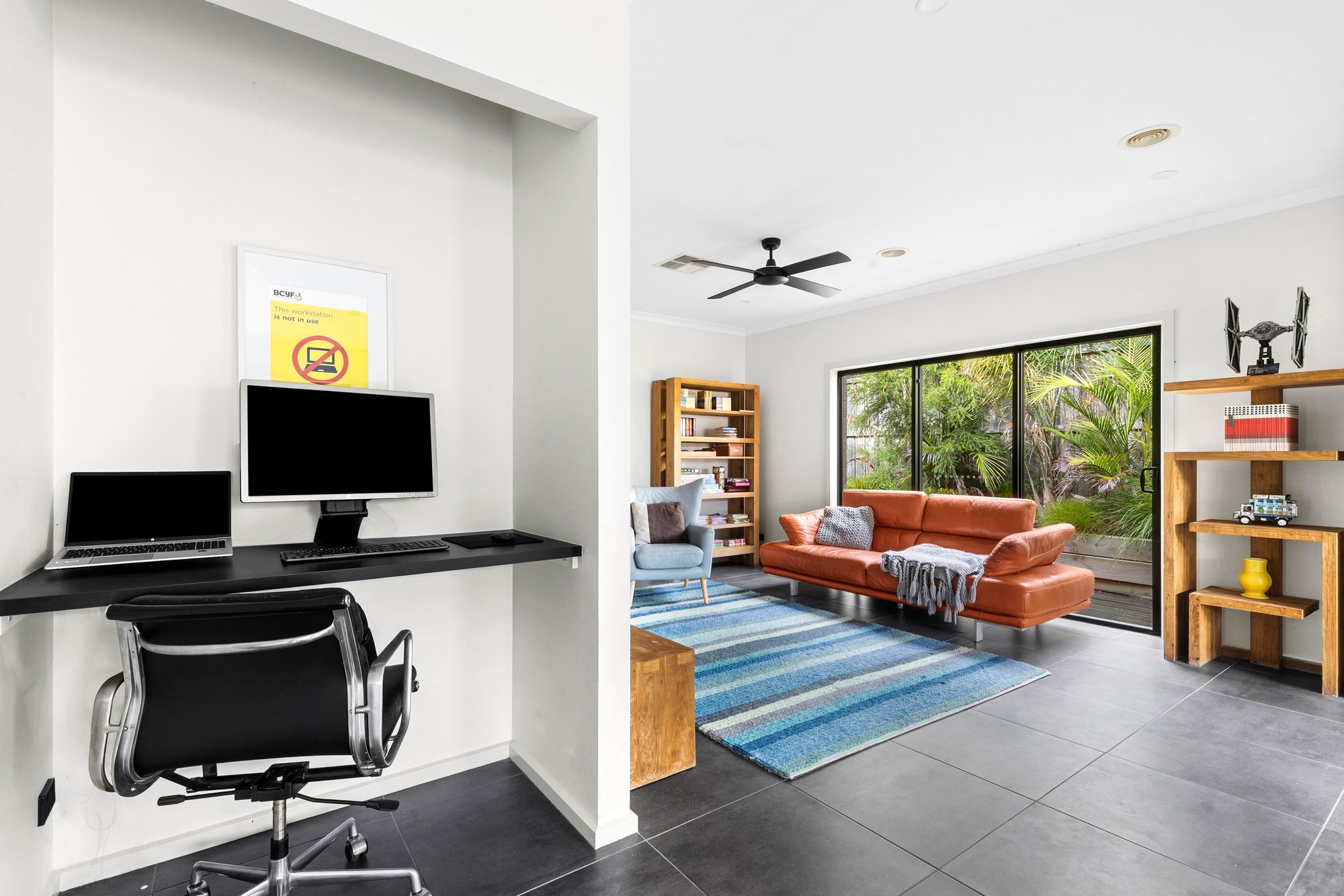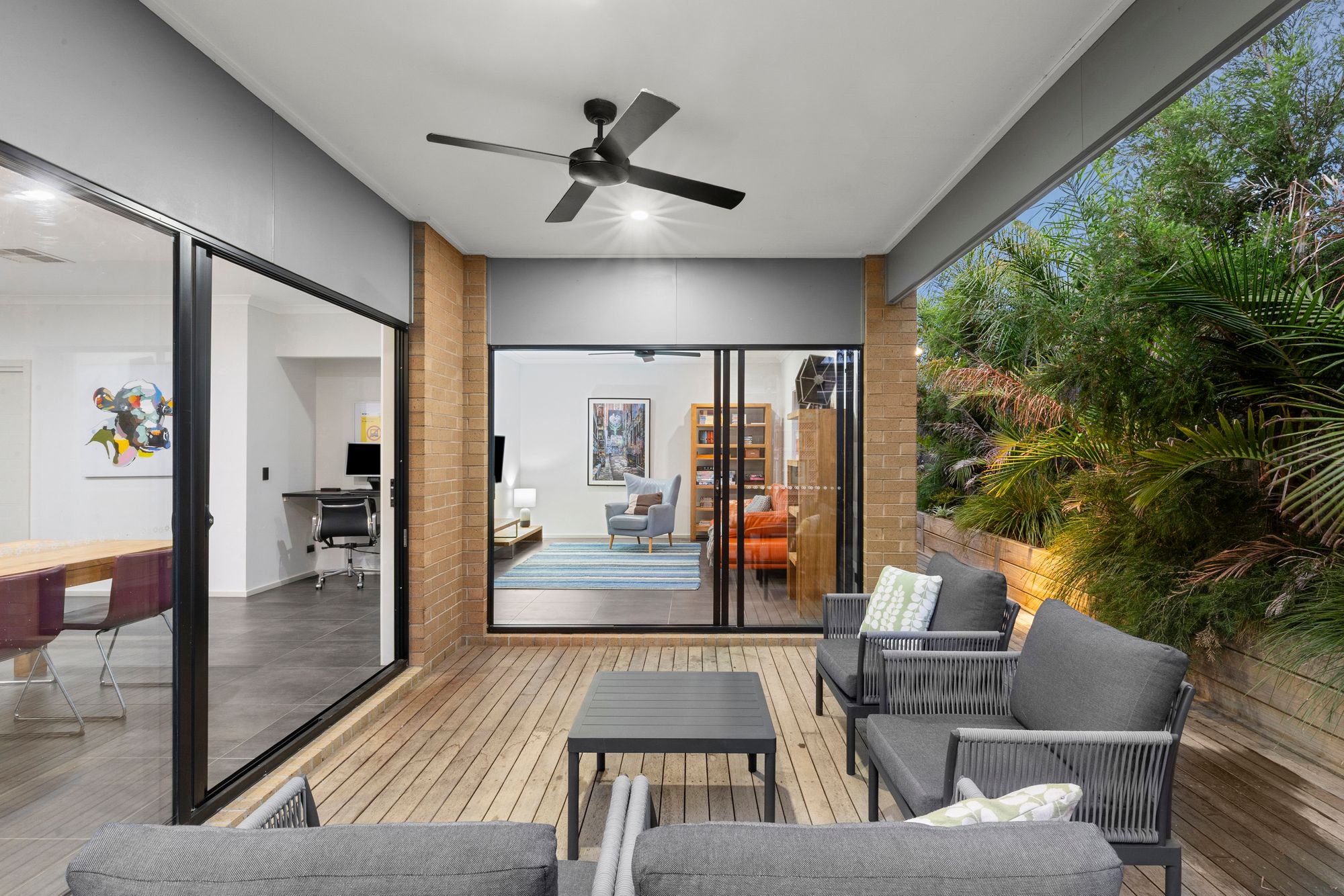 Study with built-in desk, black light switches throughout, black fixtures and fittings throughout, ceiling fans, tiled flooring, ducted heating, solar boosted hot water, double car lock-up garage with internal and external access to the home, exposed aggregate driveway, laundry with sink and storage, recycled water, established garden beds and complete landscaping, and extended deck, spacious linen cupboard, downlights, NBN internet, TV antenna ports.