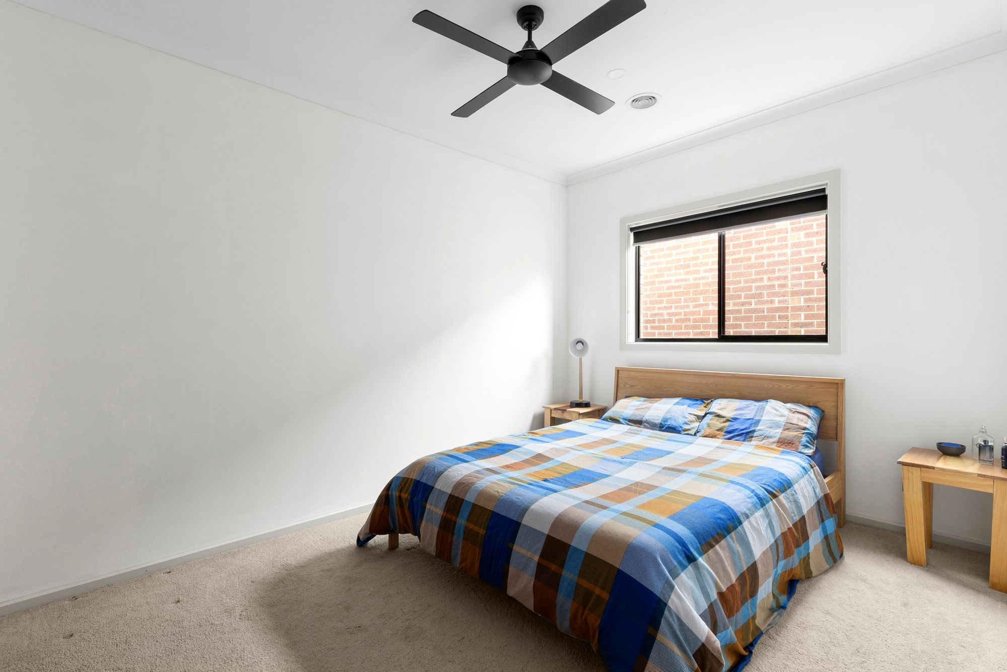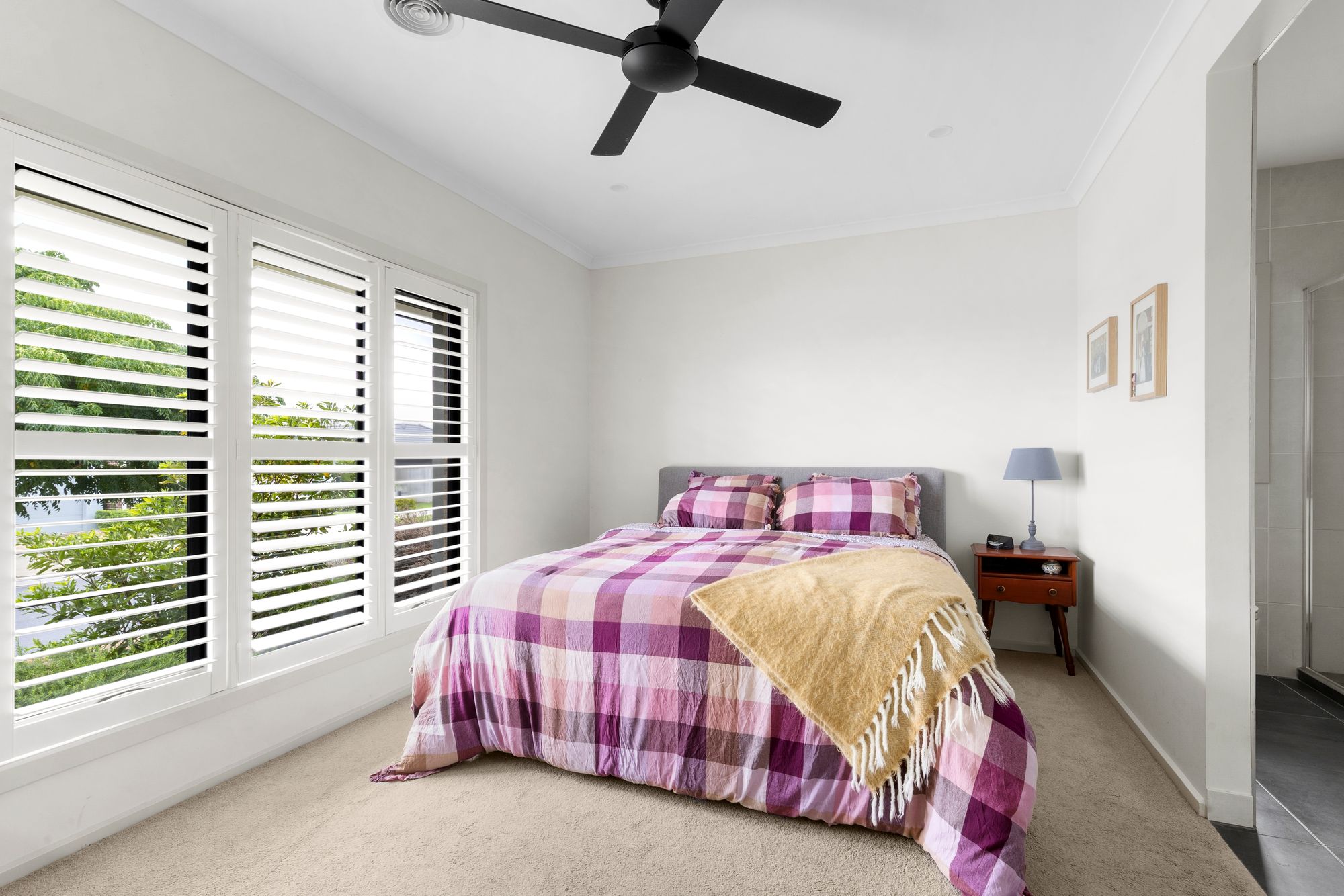 Generously sized, high ceilings, plantation shutters, ceiling fan, downlights, ducted heating, multiple powerpoint outlets, carpet flooring, large WIR and spacious ensuite