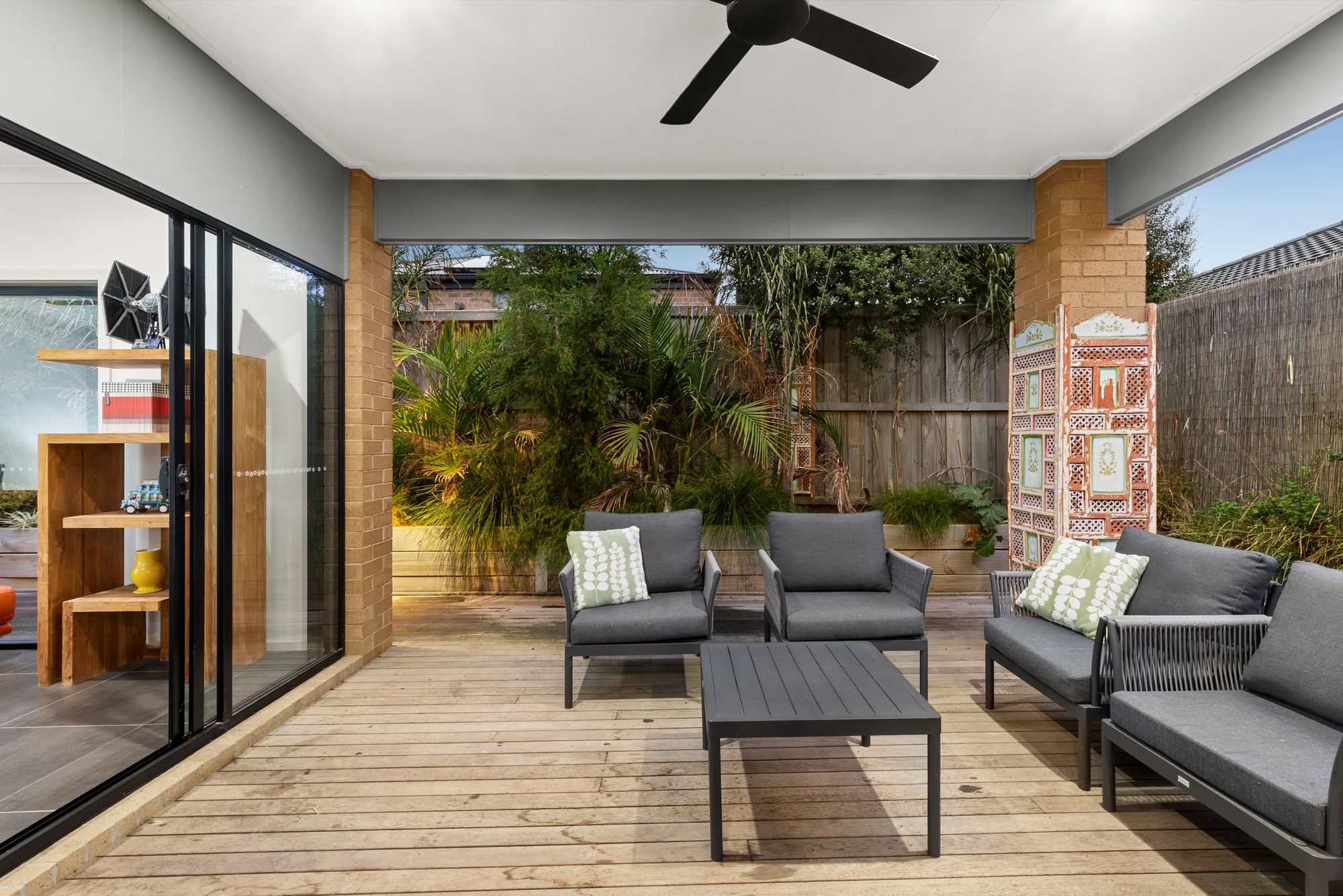 The undercover alfresco area seamlessly extends the living space from indoors to outdoors with its dual stacking glass doors. This feature is perfect for entertaining in the private backyard, making it an ideal spot for hosting gatherings or enjoying the fresh air.