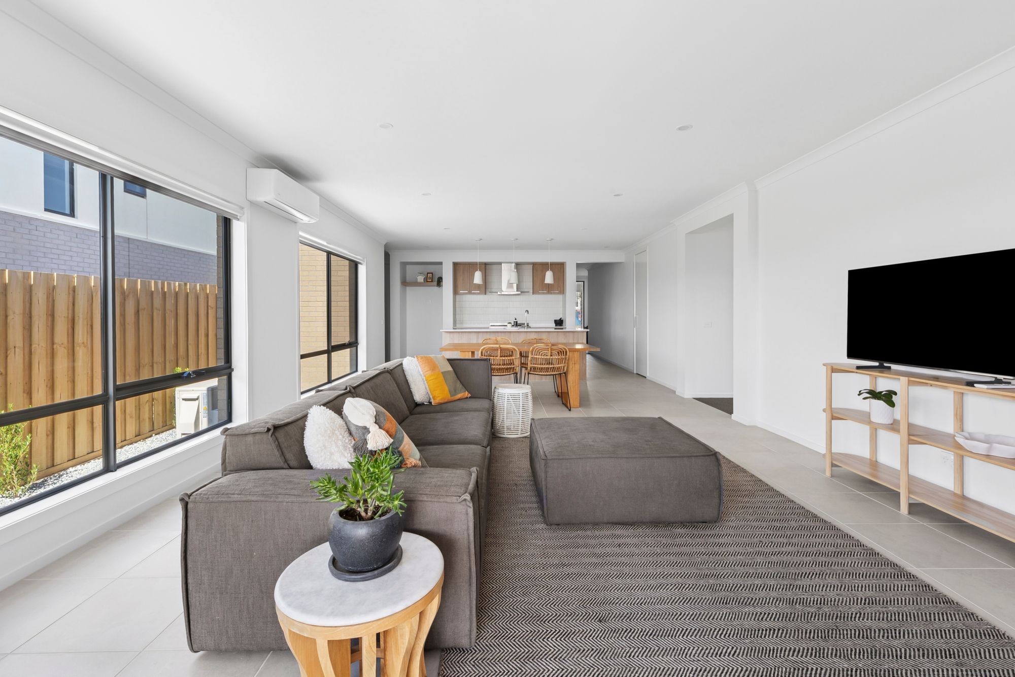 Tucked away in a highly desirable area of Mount Duneed, this exceptional near new home is sure to impress! With four generous bedrooms and two spacious living areas, this beautifully presented home is ready for you to move in and make it your own. The thoughtfully designed floor plan flows seamlessly, offering two ample living spaces and easy access to the decked undercover alfresco area and meticulously landscaped backyard. Featuring sleek finishes, high ceilings, side gate access, and a modern color scheme throughout, this property is perfect for family living. Embrace the best of coastal, rural, and city living with parks, shops, cafes, and schools just a short walk away, while the Geelong Ring Road offers easy access to Melbourne, the Surf Coast, and Geelong CBD. Your perfect lifestyle is waiting right outside your door!